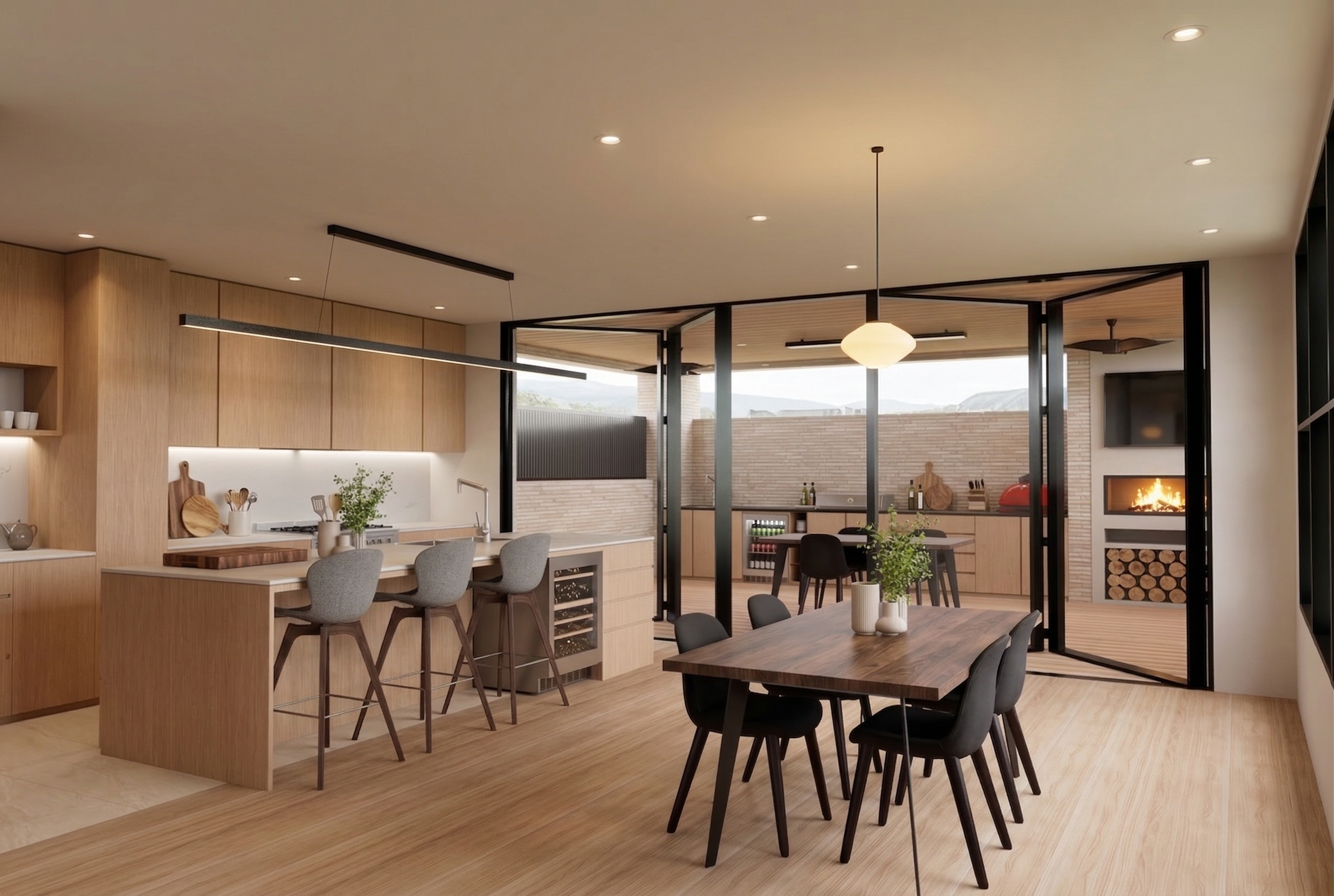 keep materials the same add fire wood logs under fireplace storage