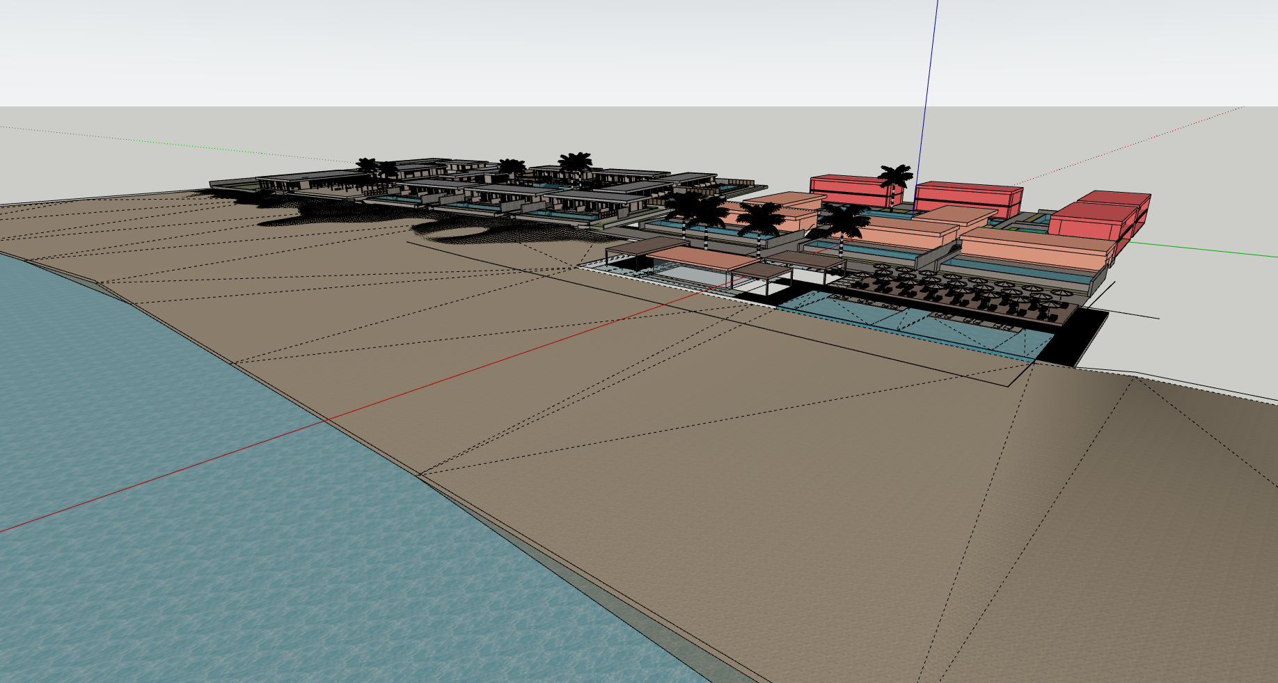render a luxurious beachfront resort complex with modernminimalistic architecture