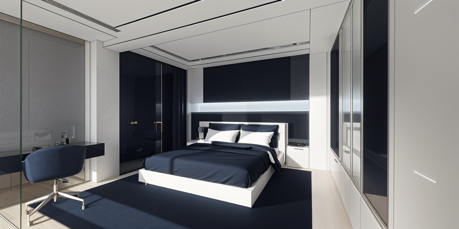 add a sunset light and a cat on the bed and turn on the light on the chest of drawers