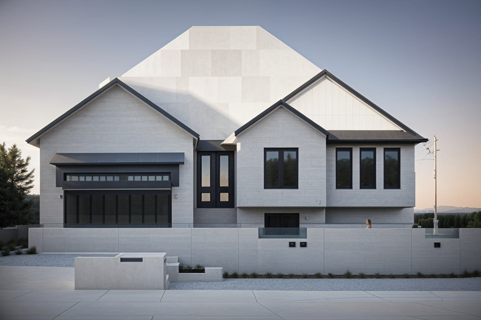 contemporary exterior shot white stone finish with some shrubs and maybe a tree in front i really like those windows up top can we pitch the roof in front of those windows lower architecture