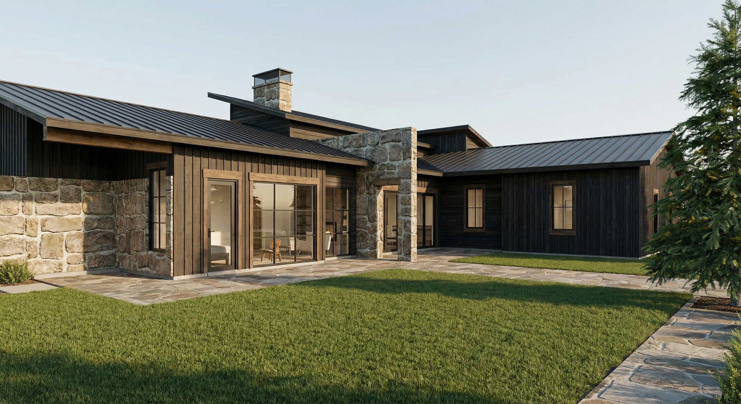 create a realistic 3d visualization paint the house facade and the window frames in beige with the window frames in a slightly darker beige tone apply a stone cladding finish to the orange wall only that wall above it where it is purple magenta place climbing plants this is mandatory above the climbing plants there is a flat light green plateau where you should add ornamental grasses behind that plateau there is a glass railing convert all light blue surfaces into glass railings all light green surfaces should be mediterranean vegetation as well as all dark green surfaces the blue wall must also be finished in stone cladding all remaining walls that are currently in concrete color must remain in exposed concrete all of this is very important do not change the geometry under any circumstances develop even the smallest details i do not want it to look like an ai render detail the stone cladding so it looks clean sharp and realistic