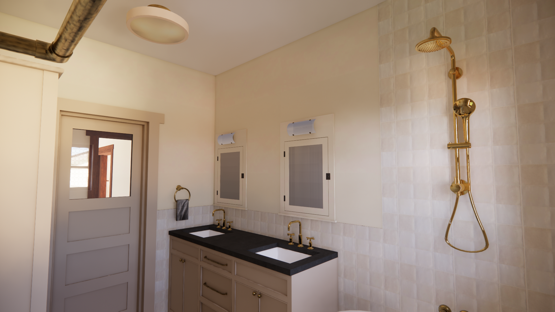 create a realistic render of this sketchup image maintain all colors and textures