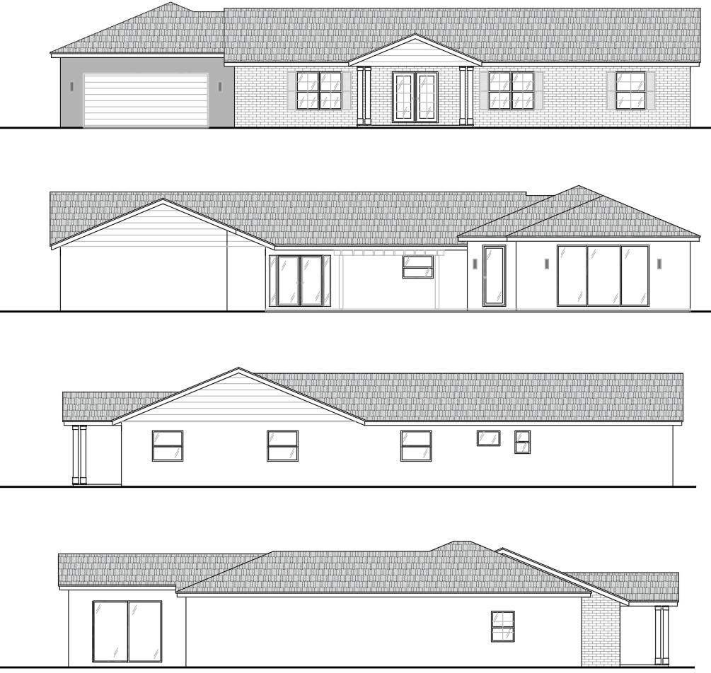 white brick walls with white siding accents and white stucco dark grey shutters dark grey garage door dark grey front door tan color shingle roof natural wood color front porch columns a nice florida weather on the background