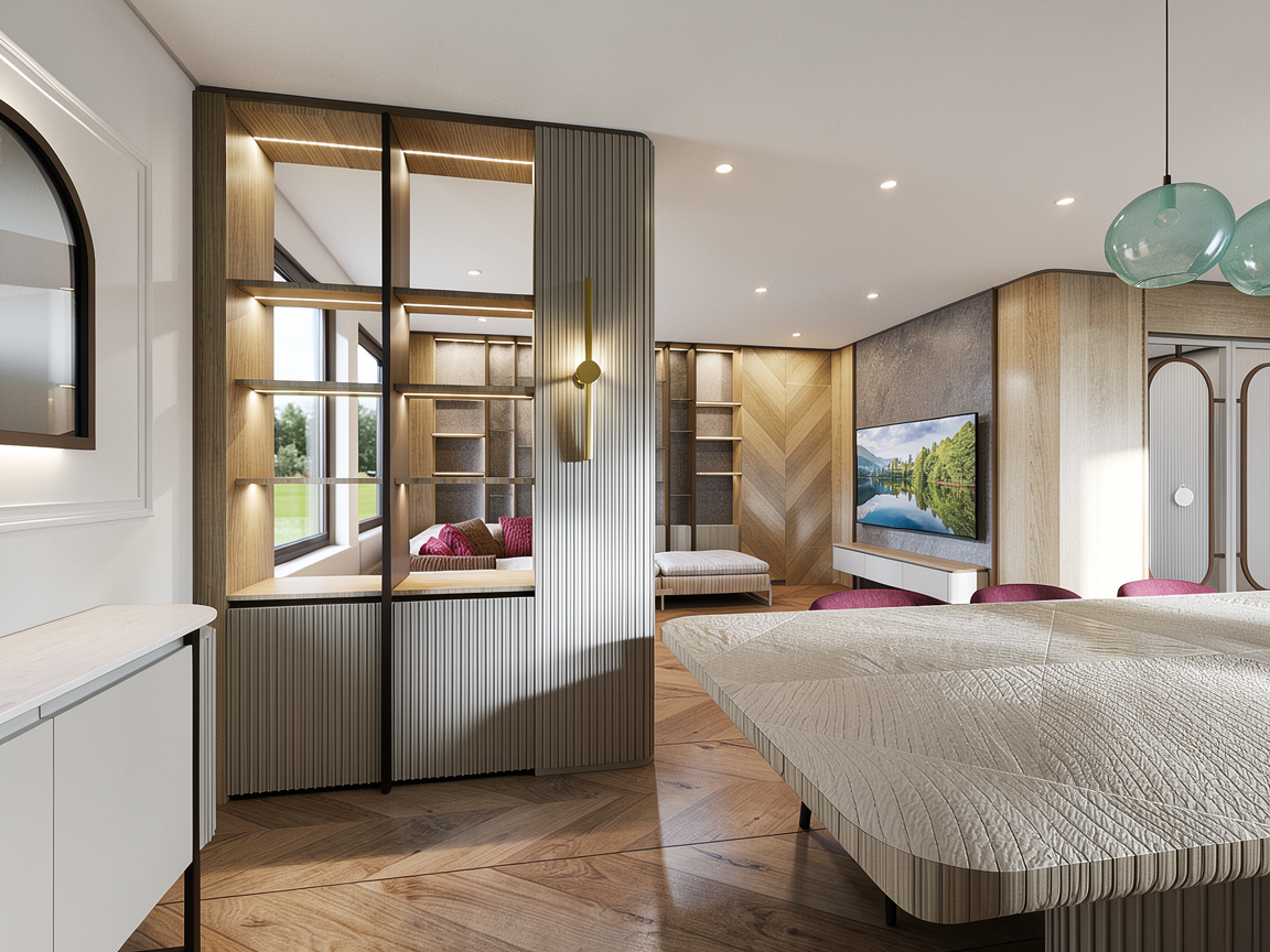 ultra realistic architectural visualization based strictly on the provided raw sketchup view preserve exact geometry proportions camera angle composition and architectural details do not redesign or alter the building enhance only with realism add realistic materials with physically accurate textures natural wood grain brushed concrete glass reflections subtle imperfections micro surface details use high dynamic range lighting with soft global illumination and realistic shadows create a lively atmosphere add naturally positioned people interacting casually walking talking using phones subtle motion blur on some figures for realism include small groups rather than posed characters add a few animals appropriate to the setting e g dog on a leash birds in the sky avoid people and dogs in the middle of the road enhance environment with greenery slight wind in trees varied vegetation tones small urban details parked cars benches subtle signage add depth with atmospheric perspective and realistic sky conditions golden hour soft overcast choose whichever enhances the mood cinematic composition photorealistic rendering 8k detail realistic depth of field natural color grading slightly warm tones architectural photography style shot on full frame camera 35mm lens maintain realism over stylization avoid cartoonish or ai looking artifacts