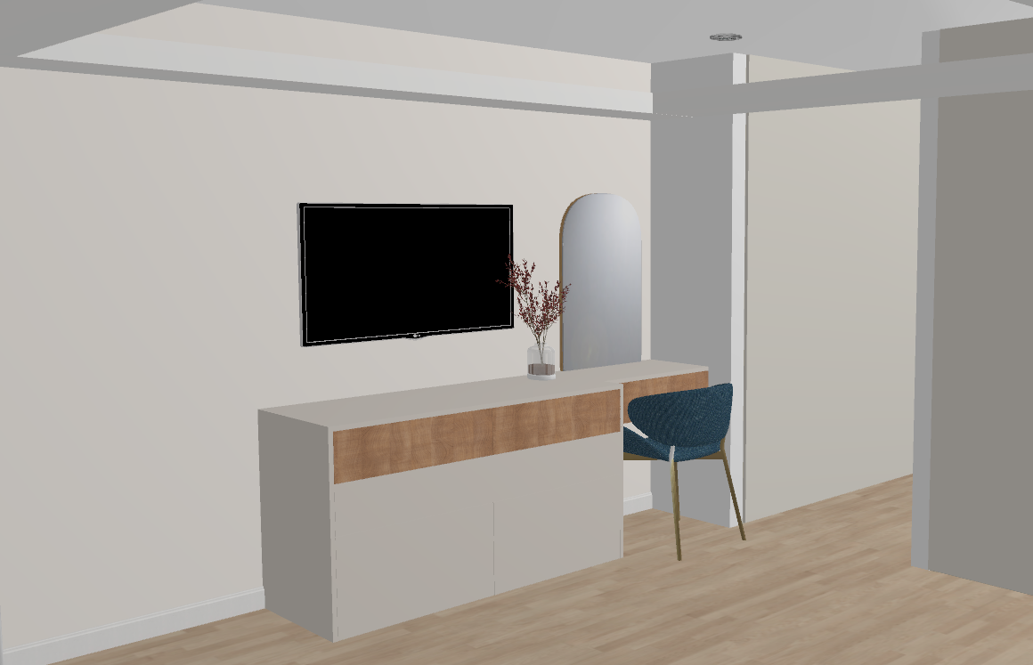 put a thin gold frame around the mirror and have it backlit justo only on the right mirror and not in the tv