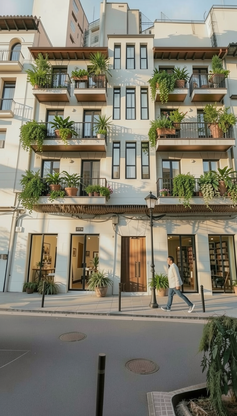 important preserve the existing geometry and the existing context exactly as provided preserve the existing windows do not add new windows do not modify alter reinterpret add remove scale or reshape any geometry do not change the site surroundings street layout neighboring buildings vegetation or context elements do not modify geometry scale proportions buildings road layout sidewalks or surrounding context in any way add context green hills and some trees
