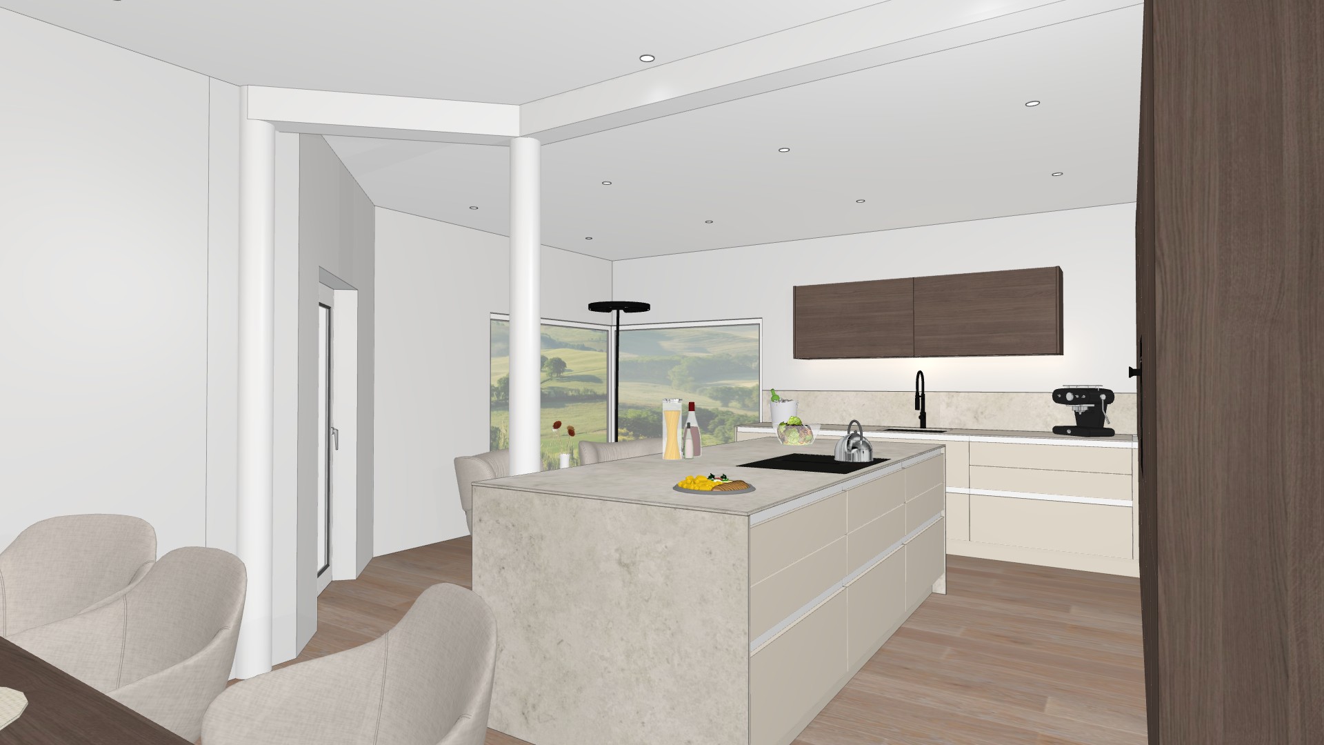 the wood is dark grey the floor fits to the wood and the worktop is made of taj mahal