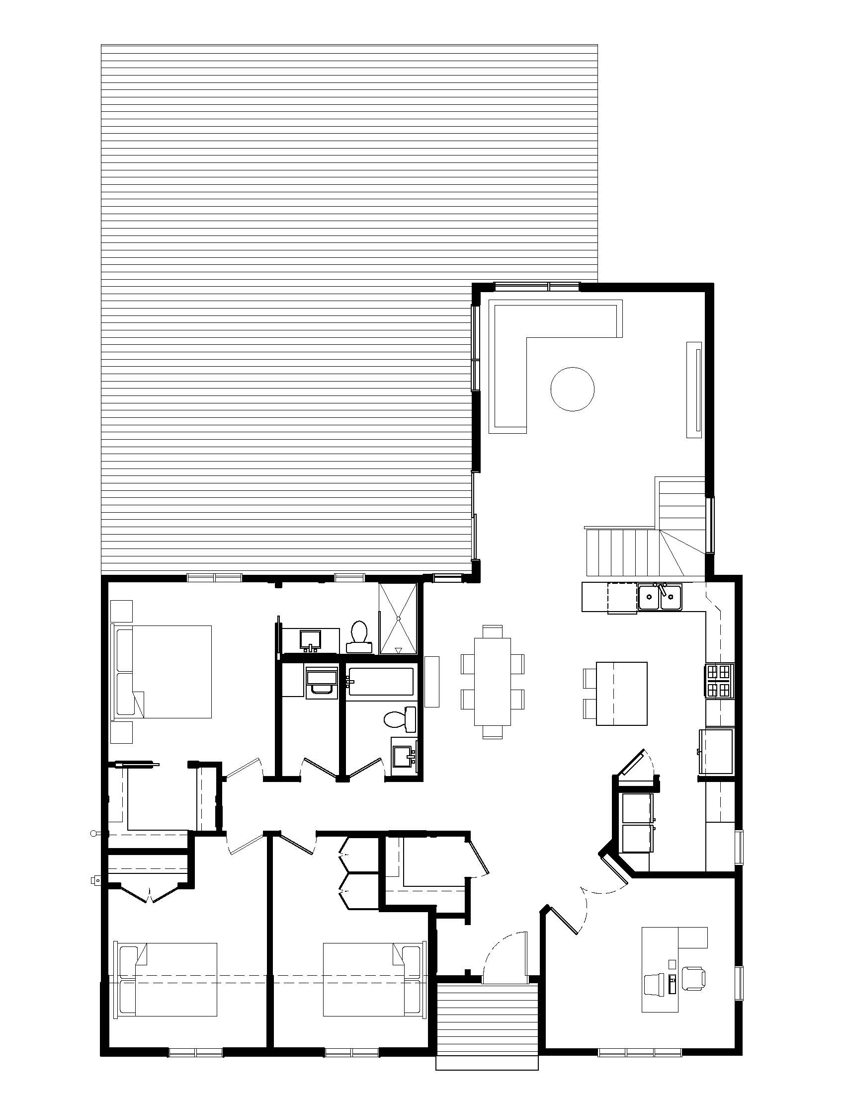 convert this floor plan into a realistic isometric 3d view of a full house show the space from an elevated angle with furniture walls and details visible render a luxurious and modern home interior based on the floor plan use warm earthy colors like beige and soft brown for the walls include dark hardwood floors throughout the living room features a large plush cream sofa with teal accent pillows the dining area has a wooden table with elegant high back chairs in navy blue the kitchen should have sleek white cabinets with stainless steel appliances and a marble countertop bedrooms are serene using pastel blues and whites for bed linens with rich walnut furniture bathrooms are bright with white tiles and silver fixtures create a cozy and inviting atmosphere with soft natural lighting use the same furniture as shows on the plan do not change the orientation of the floorplan