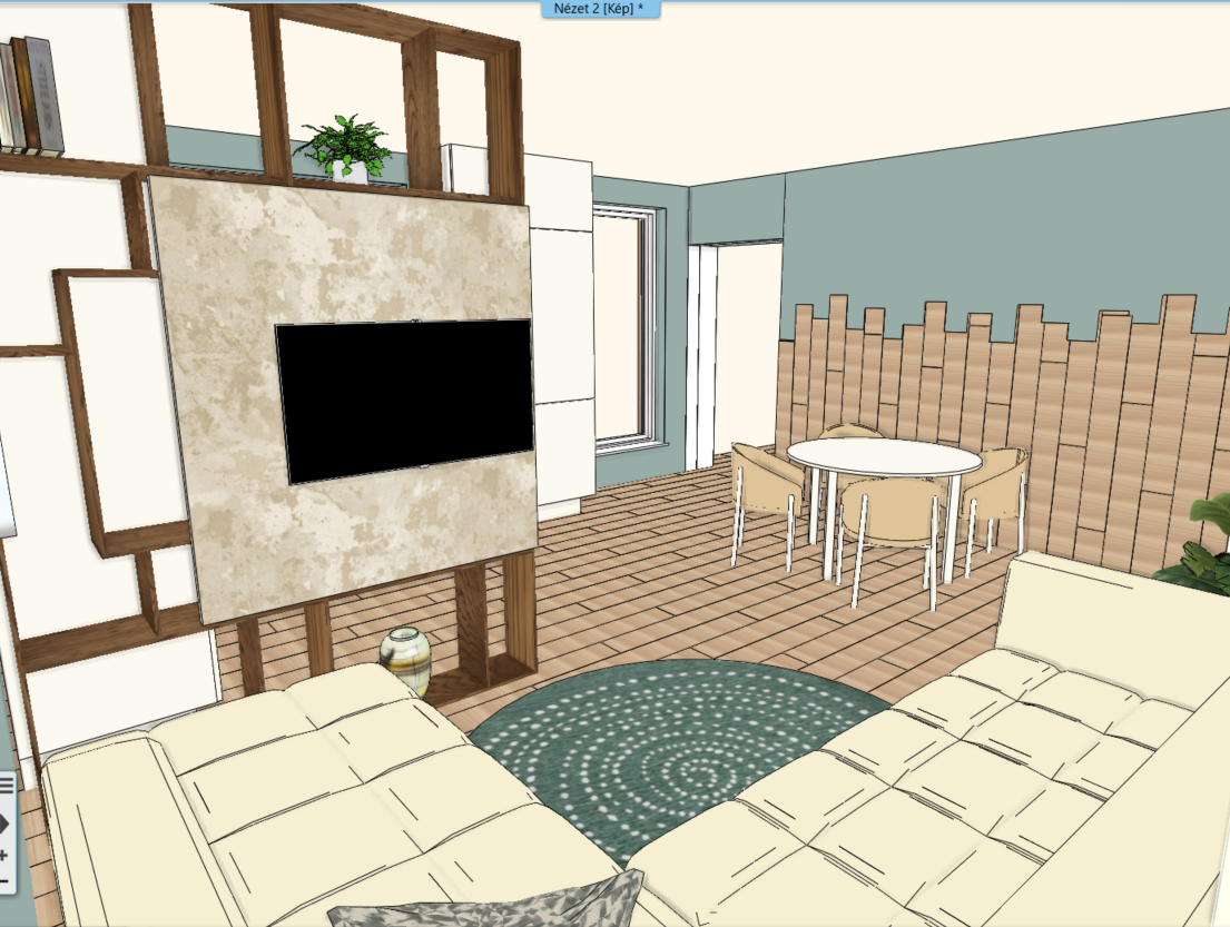k rlek k sz ts kellemes skandin v hangulat szob t a padl nat r t lgy sz n a kanap t rtfeh r az tkez asztal feh r az tkez sz kek b zs sz n ek h tt rben a konyha feh r a tv tart llv ny k z pbarna rajta a tv tart kis fal m rv ny b zs a fal rozmaring g sz n