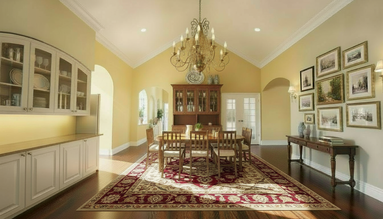 create an etremely lifelike rendering without changin the details of this image make the glass in the french doors frosted so you cant see into the room beyond