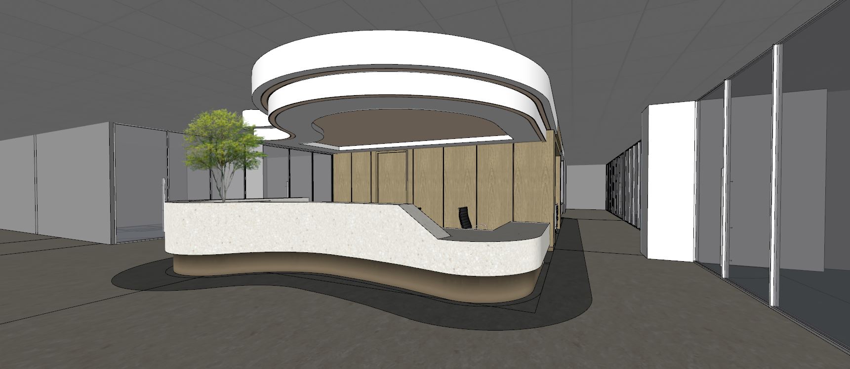 add ceiling lighting at the corridors of this nurse station
