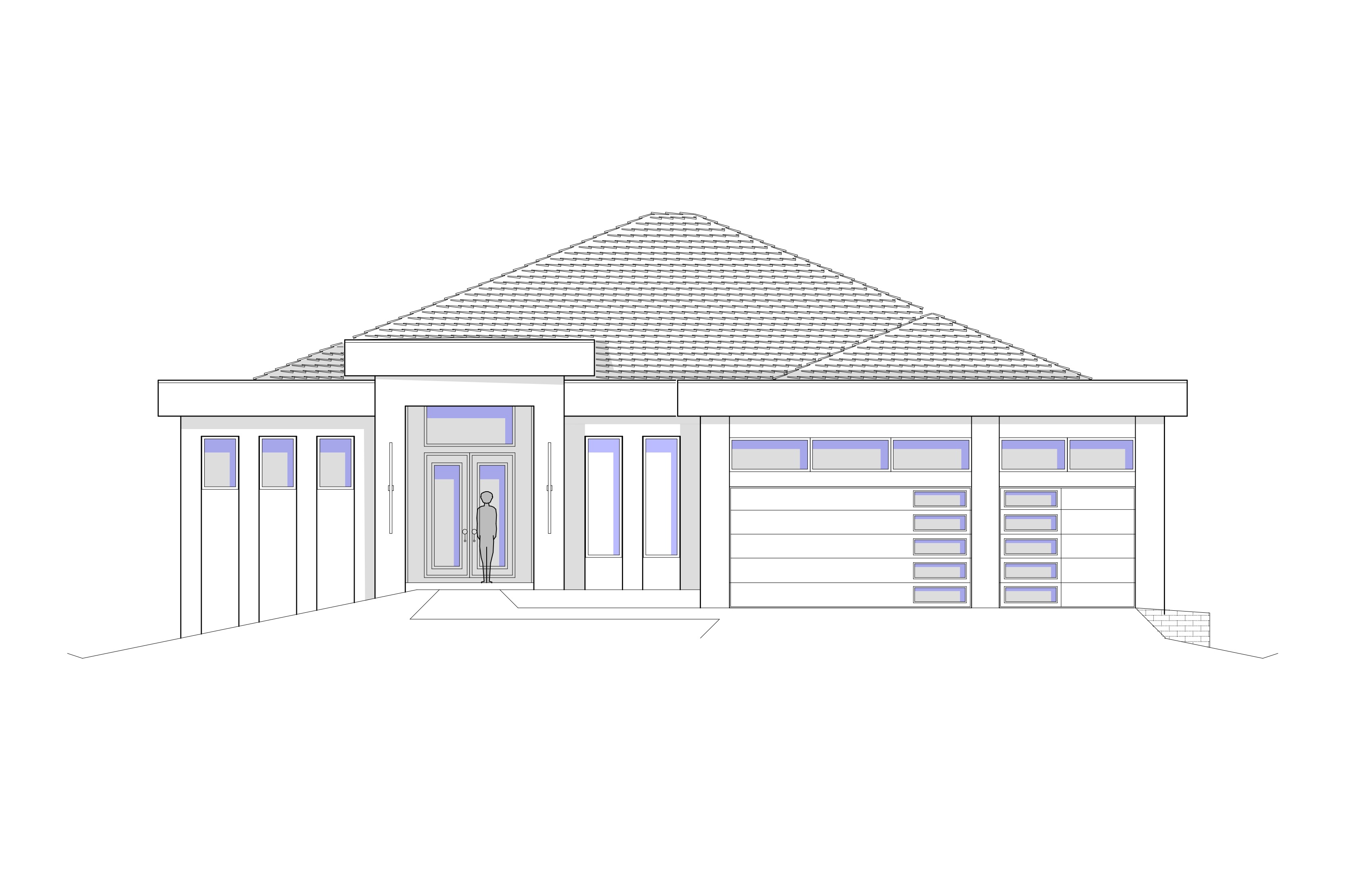 dark gray tile roof white color on walls dappled gray paver driveway dappled gray paver walk to entry grass yard tropical landscape blue sky with clouds