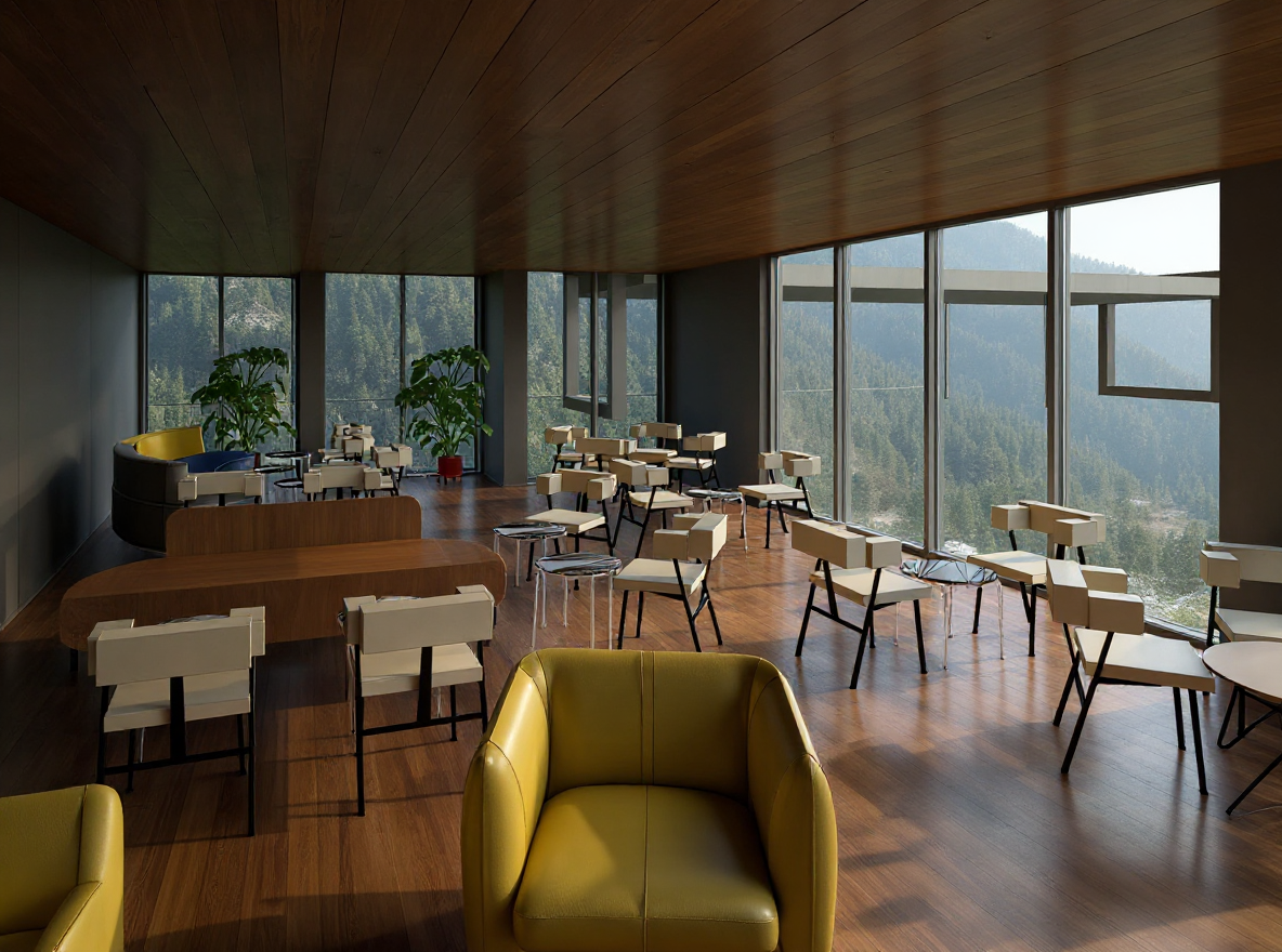 add sunlight and modern render generate from the image that i put change background or image outside this image is taken from ground floor at the window near flower is a road and on the window in the right is a parking put light in the ceiling spots and leds