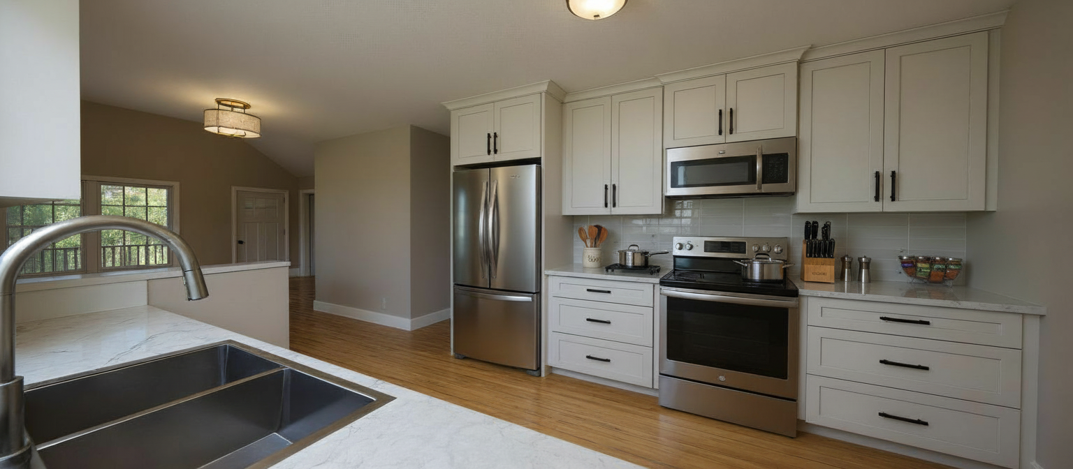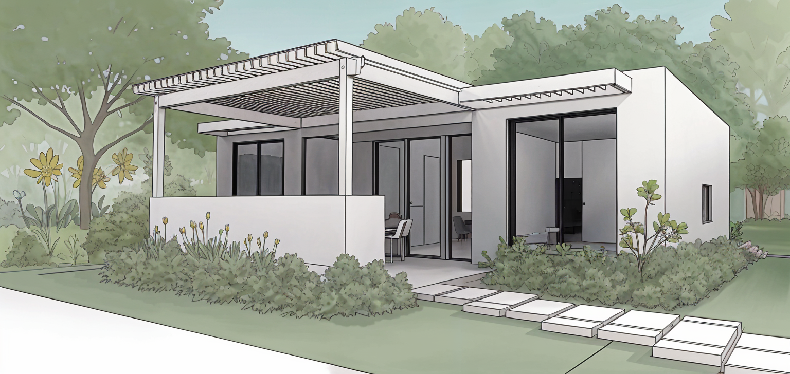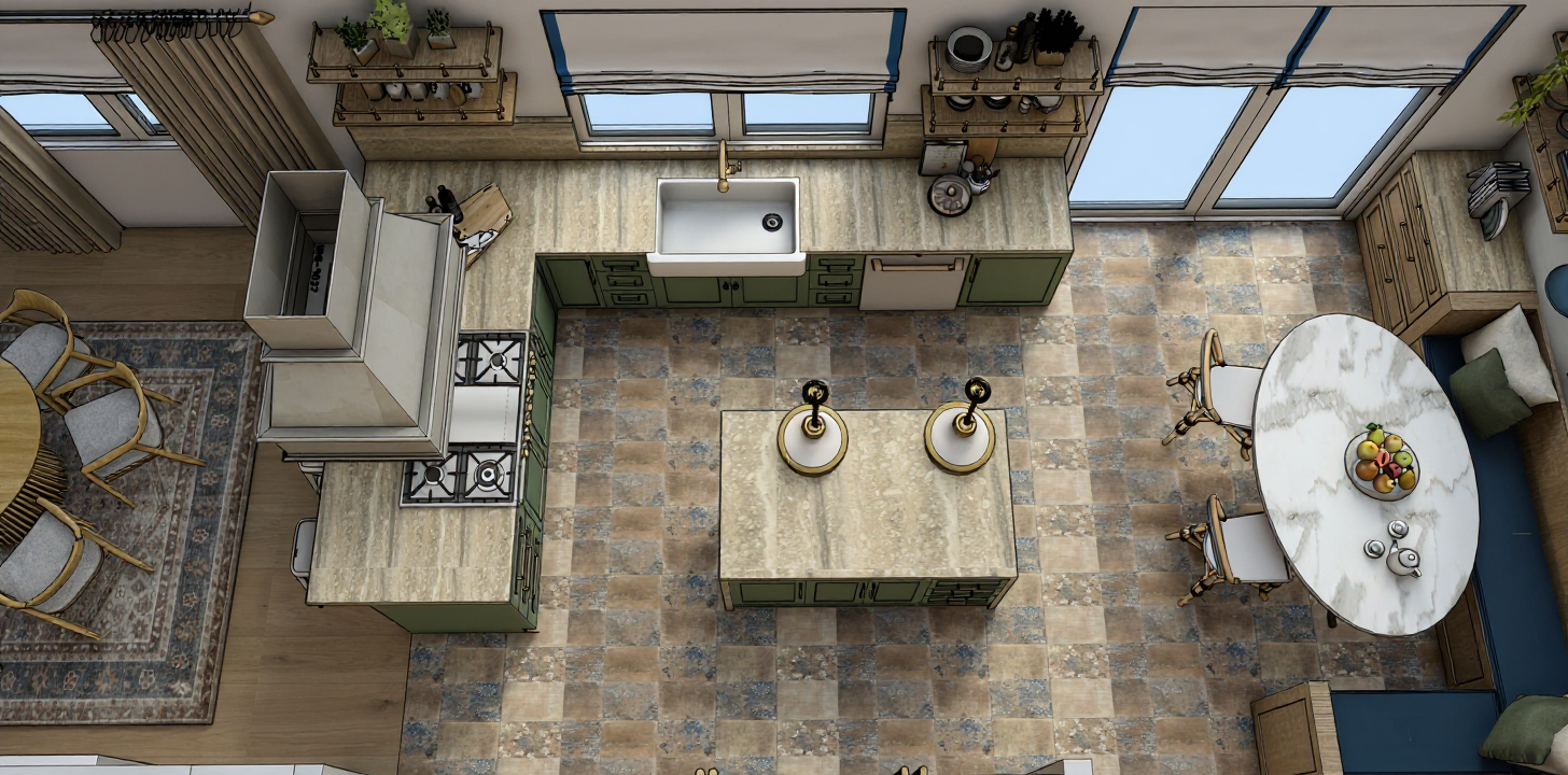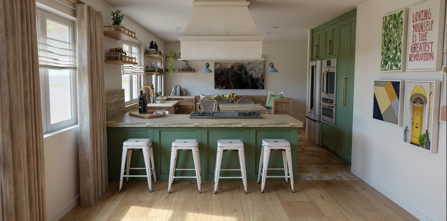this is the inside of my home living room this is my hand drawn image of how i would like to design my room with a single couch facing the wall the arches on the back most wall have the same wood trim as the cabinets below round coffee table in the center there are stairs on the left side of the room where the wall that follows the stairs up the left side contains an estetic wallpaper with a bar stool cabinets along the left wall connected to the stairs the coffe table cabinets border the left wall and back wall where the arches connect the right side wall has a arched entry way with a window viewing the outside additionally a modern single person chair sits on the opposing side of the couch make sure the couch faces the opposing wall i want to see the back side of the couch with the moder chair on the other side in the back right corner make sure the window on the right side is much smaller and that the arched entry way on the right most wall is visible the entry way is closer to the camera than the window