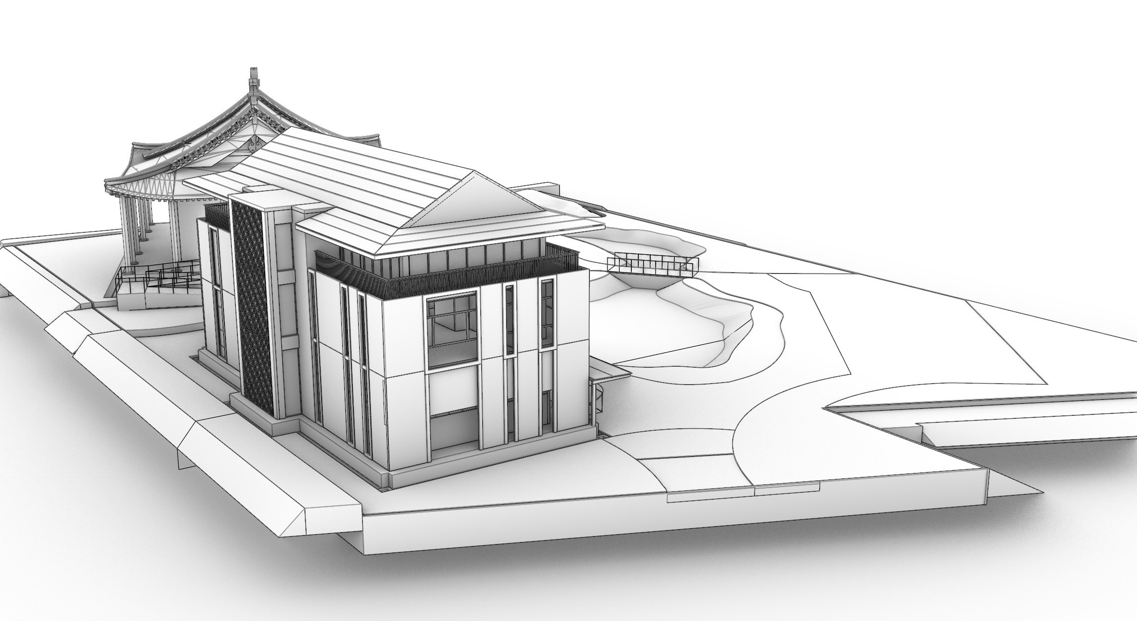 exterior shot chinese song dynasty temple and with modern chinese style tourists hotel brown color styles golden roof architecture