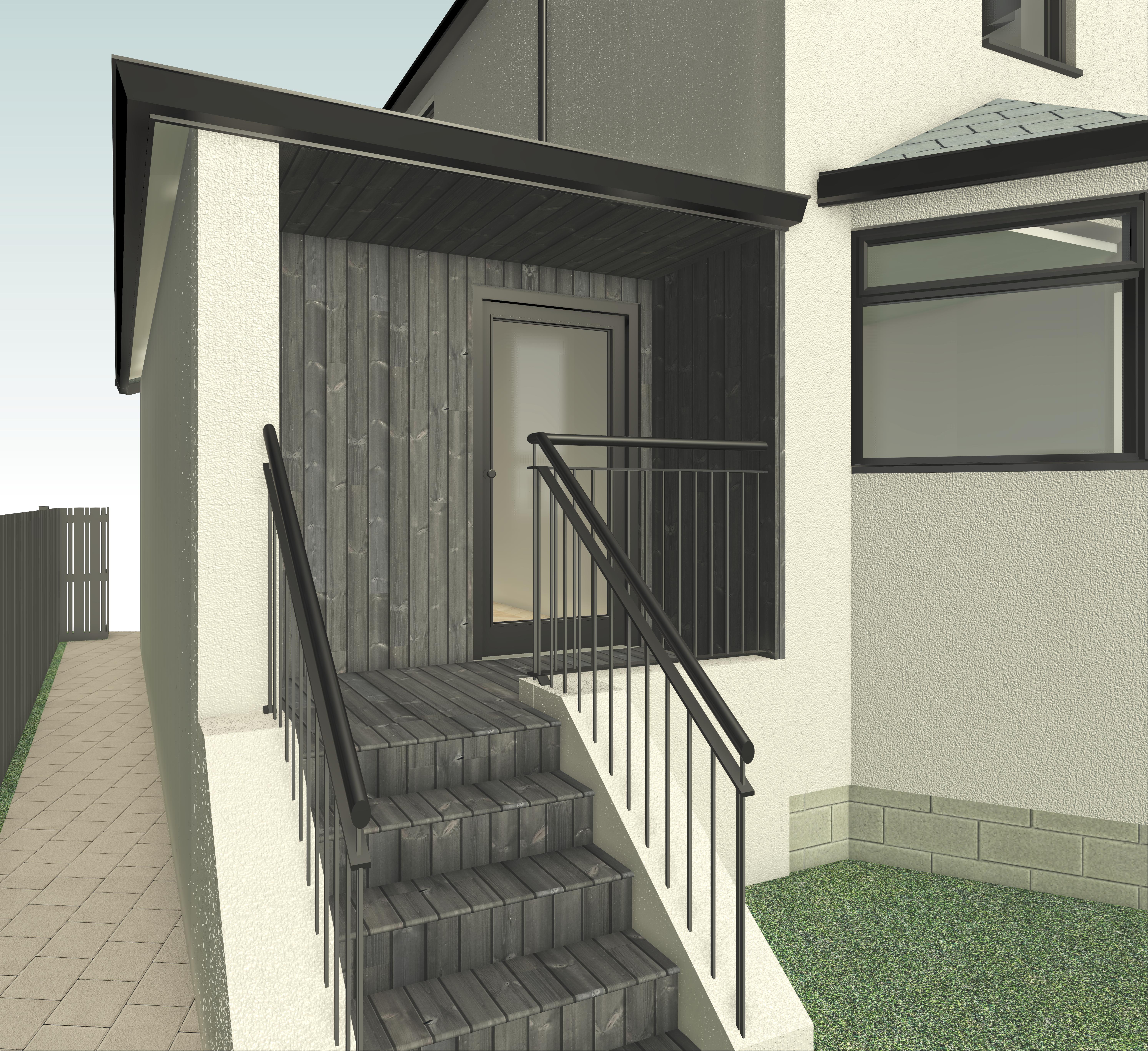 make grass realistic maintain materials shown but realistic walls to be cream render where shown as whiteroof to be square concrete slate effect tiles add sky with few clouds maintain timber cladding where shown