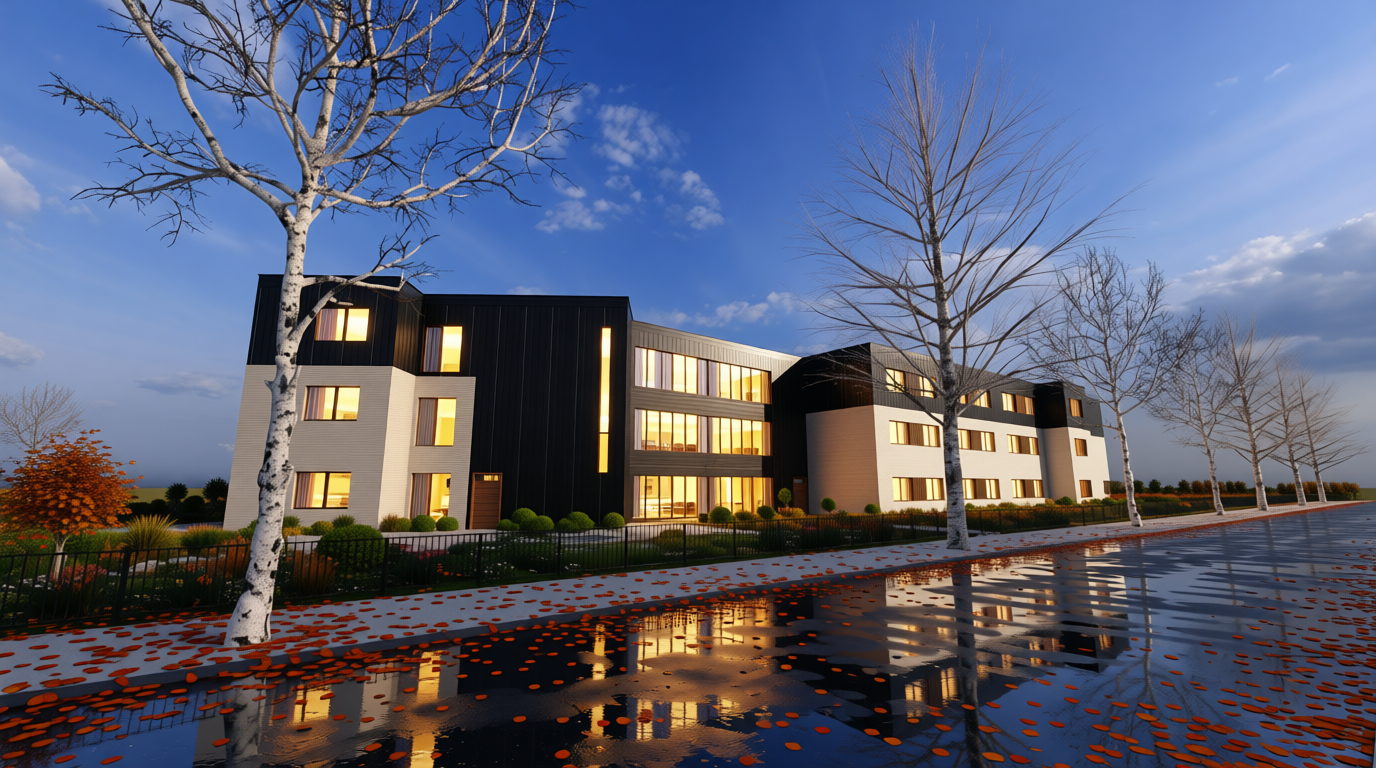 exterior shot remove the balcony and make it smaller in the middle of the facade