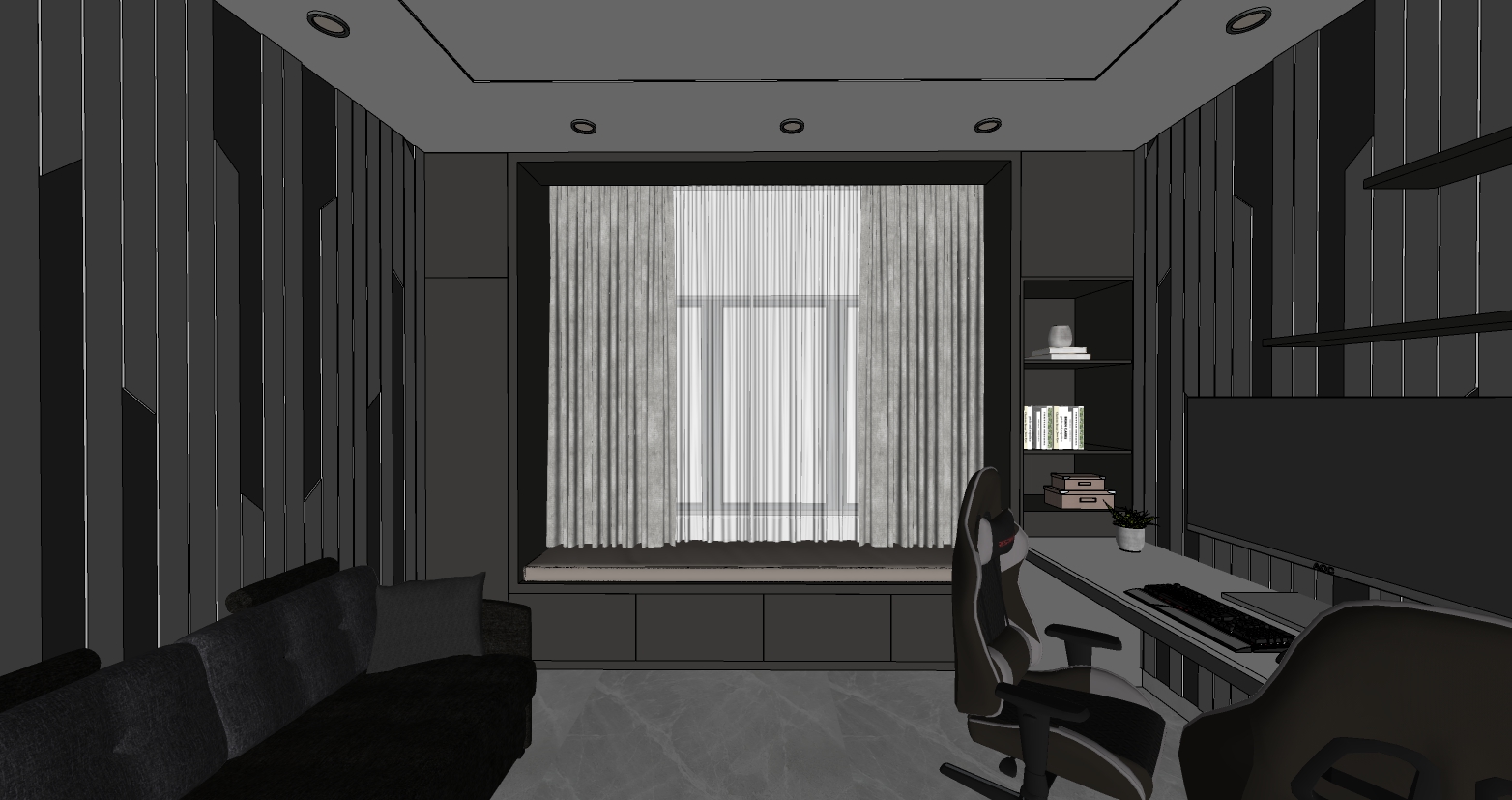 create a realistic interior render showcasing the existing furniture and flooring with their original textures preserved exactly as provided provide illumination for the light fixtures and under cabinet lights retain the marble flooring texture provide a blue neon light on the display wall on sides and also under the skirting