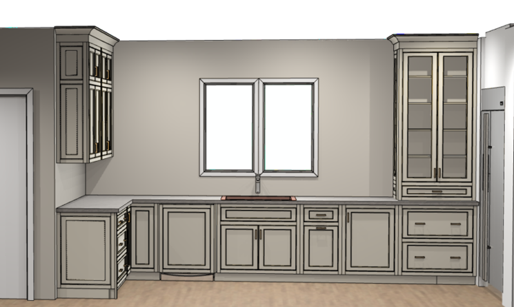 create photo realistic image do not change design or add decorative items countertop and backsplash should be quartz with small veining