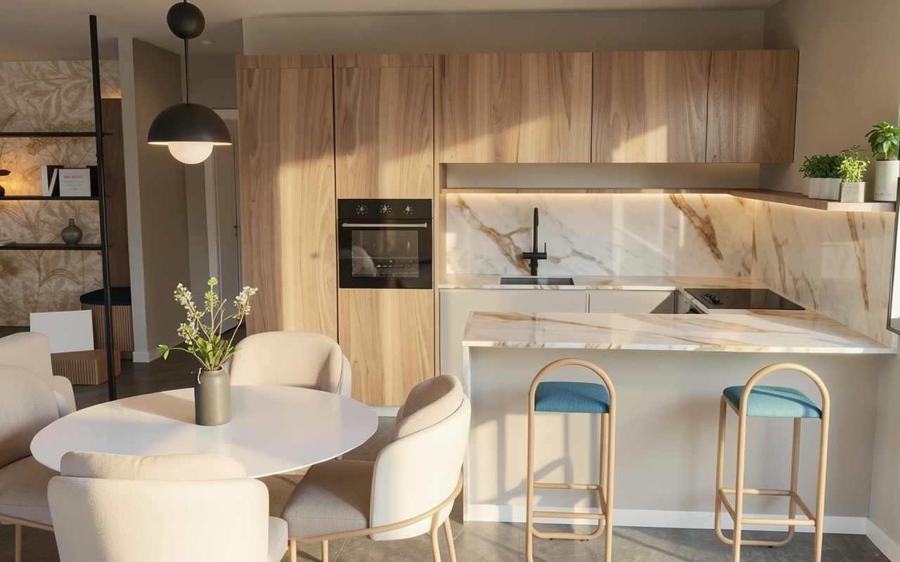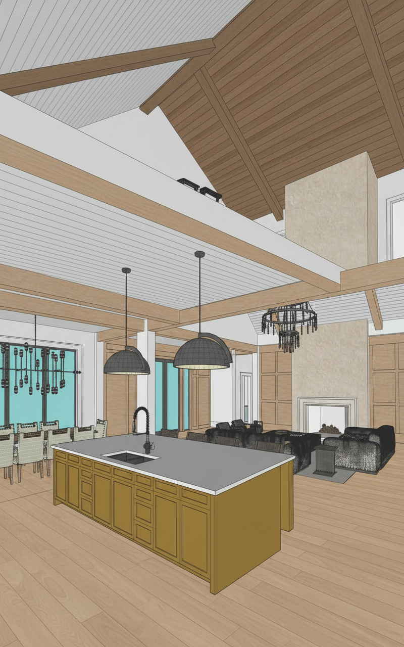 important do not change the geometry proportions or camera position only enhance materials lighting reflections and landscape goal create a high quality exterior architectural rendering that looks like a professional architecture photograph the image should emphasize realistic reflections on the glass refined material textures and a calm natural environment inspired by scandinavian architecture and minimalism the composition should feel balanced natural and harmonious exterior materials structural frame exposed pillars and beams in matte black steel exterior walls black charred wood cladding japanese shou sugi ban style installed vertically window frames black pvc minimal profile exterior deck flooring wide wooden planks similar to oak boards dark wood tone but not black lintels and soffits black plywood panels with visible wood grain dark stained finish landscape natural setting with a mountain in the background with gentle slopes not steep trees surrounding the house integrated naturally with the landscape simple natural terrain and vegetation lighting soft late afternoon light with warm tones subtle warm artificial light coming from the interior and visible through the windows realistic glass reflections and soft shadows rendering style photorealistic architectural photography scandinavian aesthetic natural textures and accurate material rendering calm balanced atmosphere high realism in glass reflections and lighting
