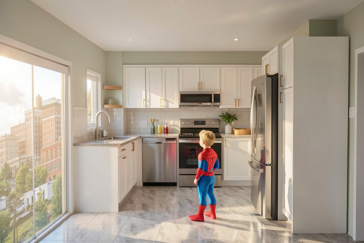 add a nice neighborhood in the background make it dusk
