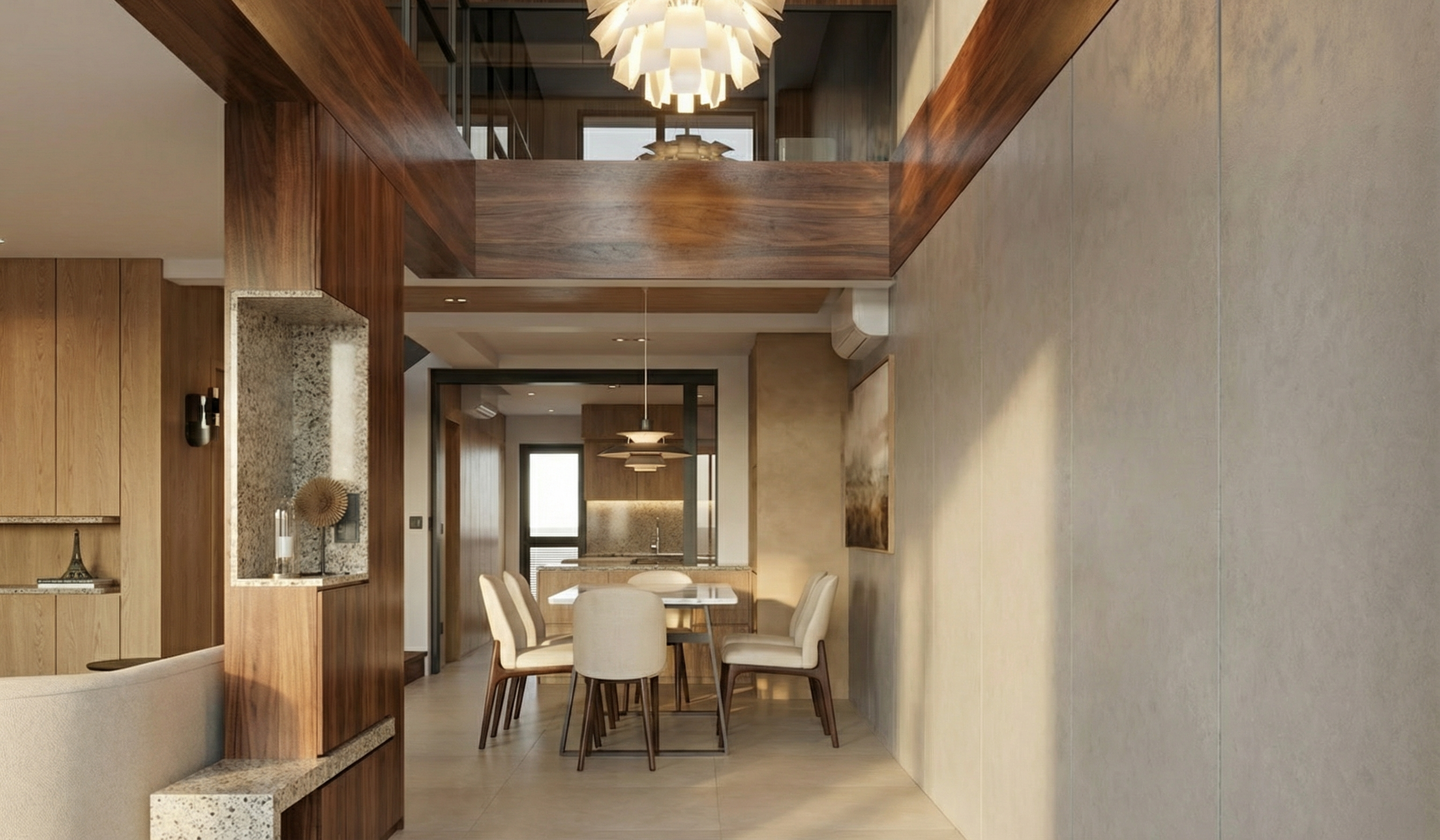 floor plan design detailed architectural illustration render the layout with a warm beige background for the paper texture use deep brown for the walls and a soft charcoal gray for the text and numbers highlight key elements with vibrant red accents for annotations incorporate a vintage and elegant atmosphere ensuring crisp clean lines and a sophisticated balance of colors