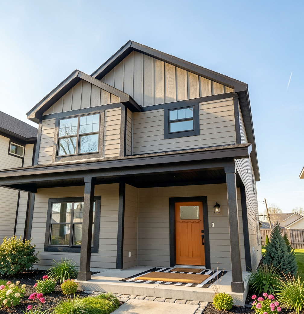 leave everything the same except make the front door mat a normal 2x3 with a 3x5 black and white stripe mat underneath in normal placement by front door