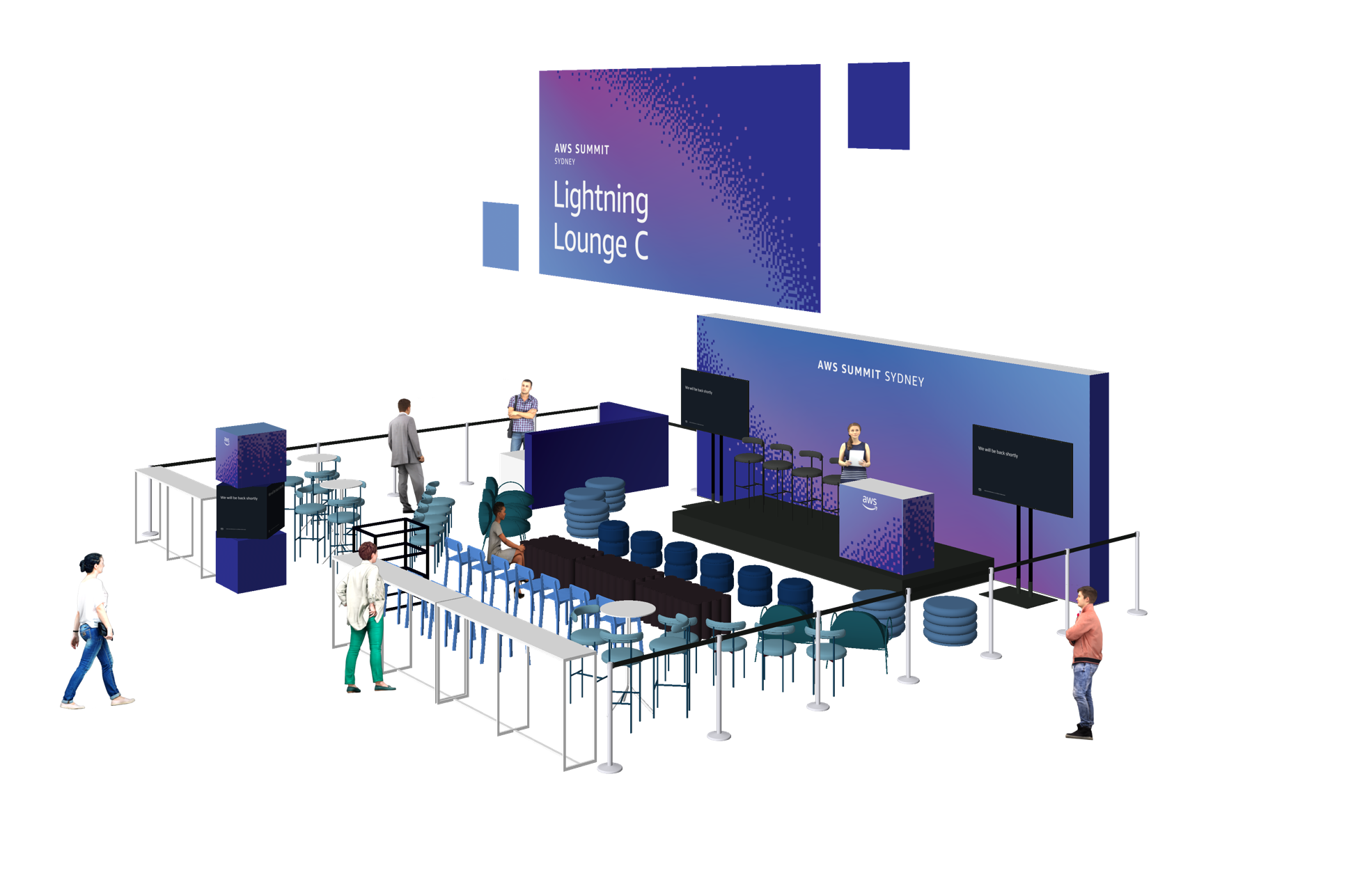 realistic space black negative space around the stage soft purple and pink lighting surrounding led stack boxes at the front only maintain furniture and led blocks colour and texture