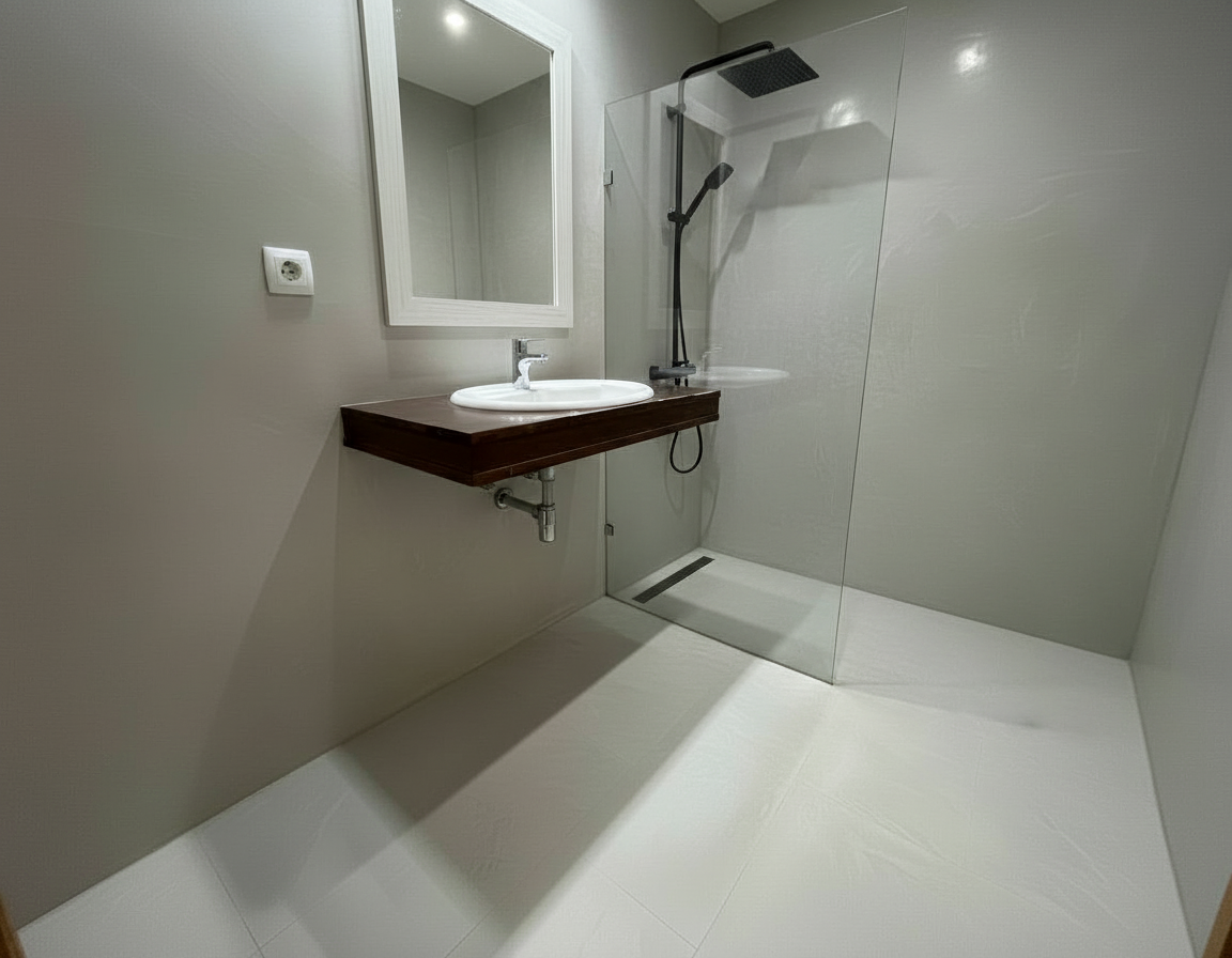 elimina el lavabo elimina el mueble del lavabo y pon un mueble de microcemento pon sobre el mueble un lavabo