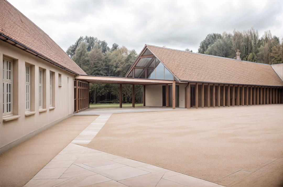 please remove the dotted lines and completed a realistic 3d rendering in natural daylight use a warm white color pallet