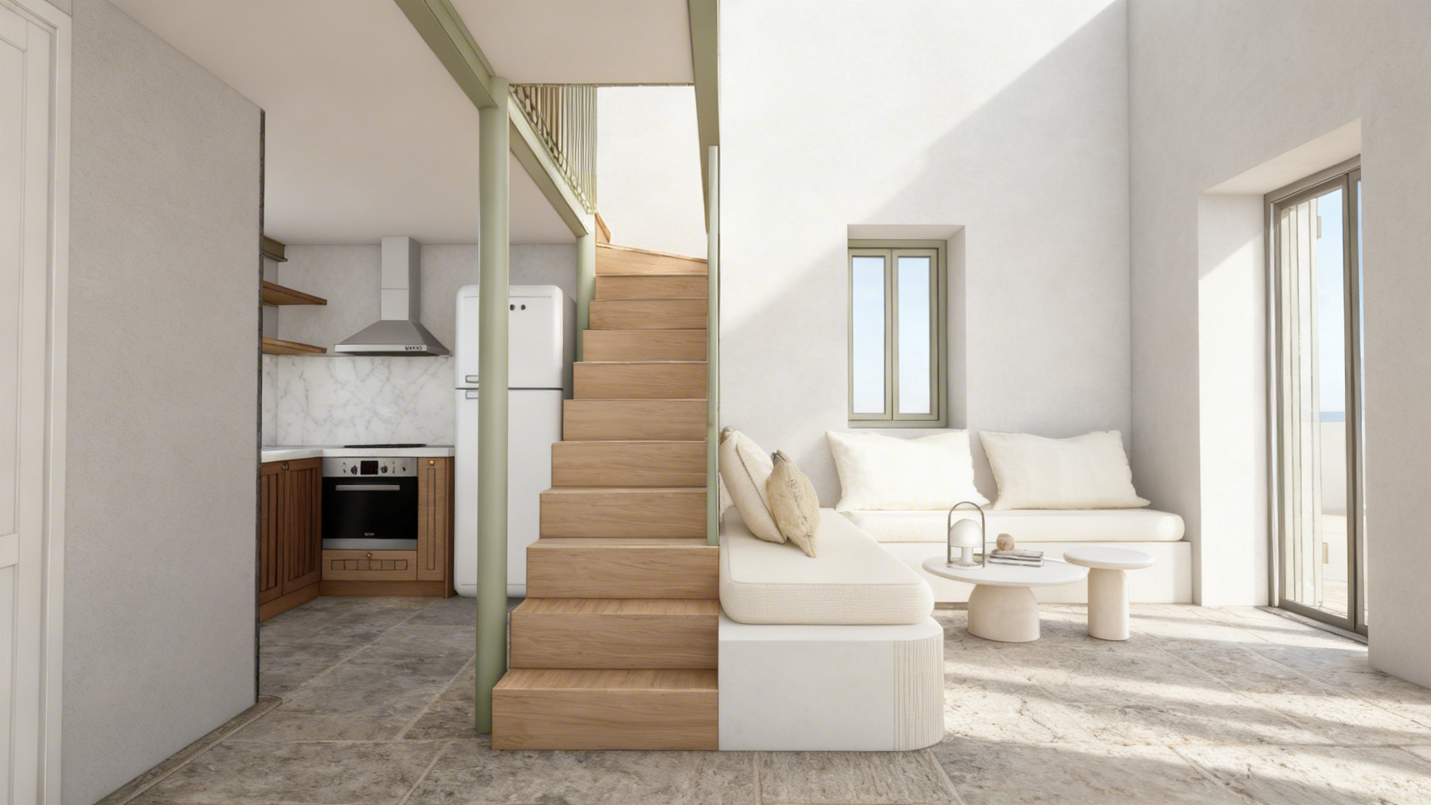 futuristic immersive exhibition space dark ambient environment dramatic cinematic lighting large open industrial hall with black ceiling soft directional spotlights soft atmospheric haze focal stage sleek modern presentation stage with bright yellow wall and led screen minimal premium design concrete but subdued floor reflections modular exhibit kiosk with integrated screen business attendees interacting naturally slight motion blur on walking people volumetric lighting high end experiential design ultra realistic octane render unreal engine style cinematic composition depth and contrast premium brand experience dark surrounding