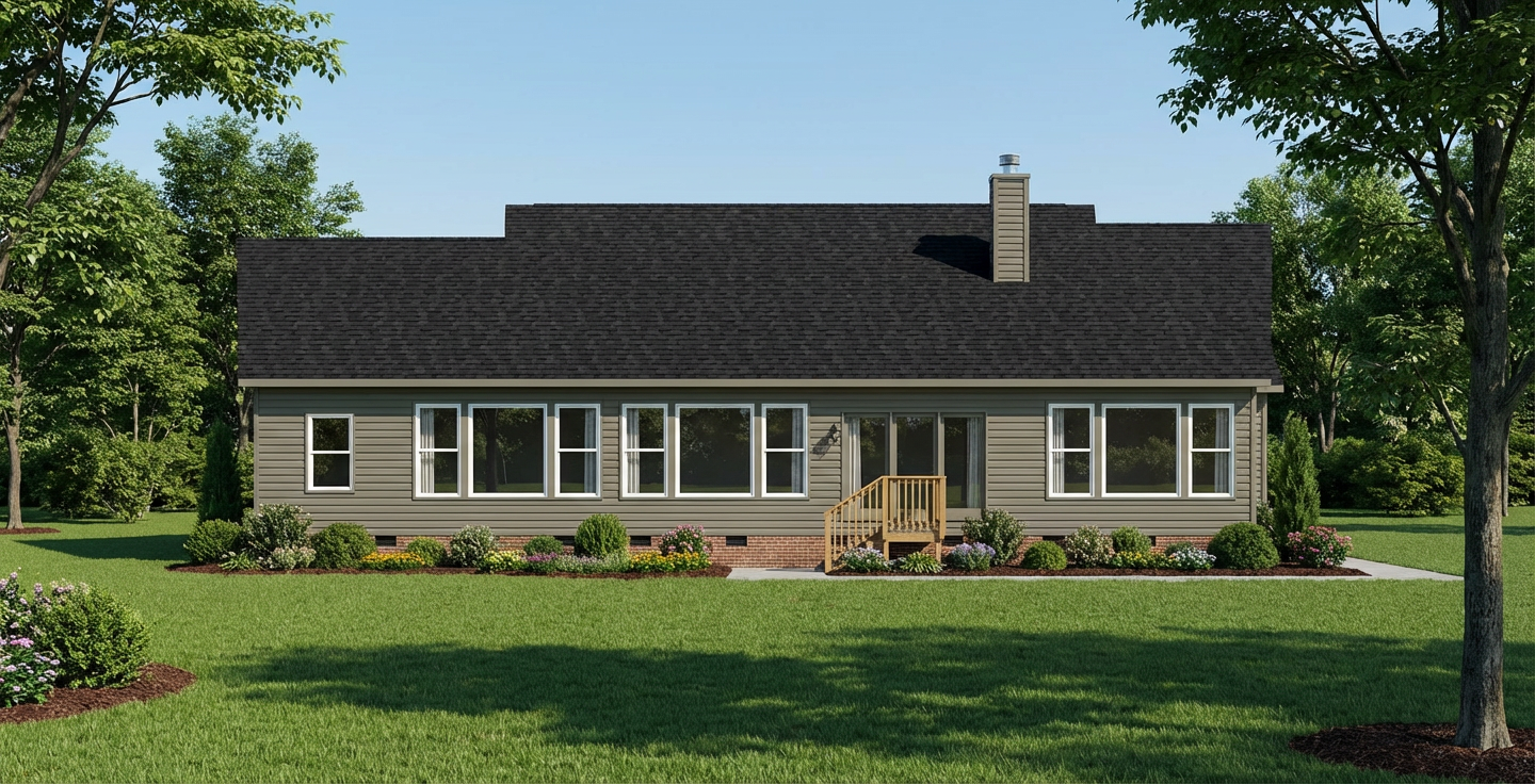 render this sketchup image red brick walls slate roof pennant stone wall in front