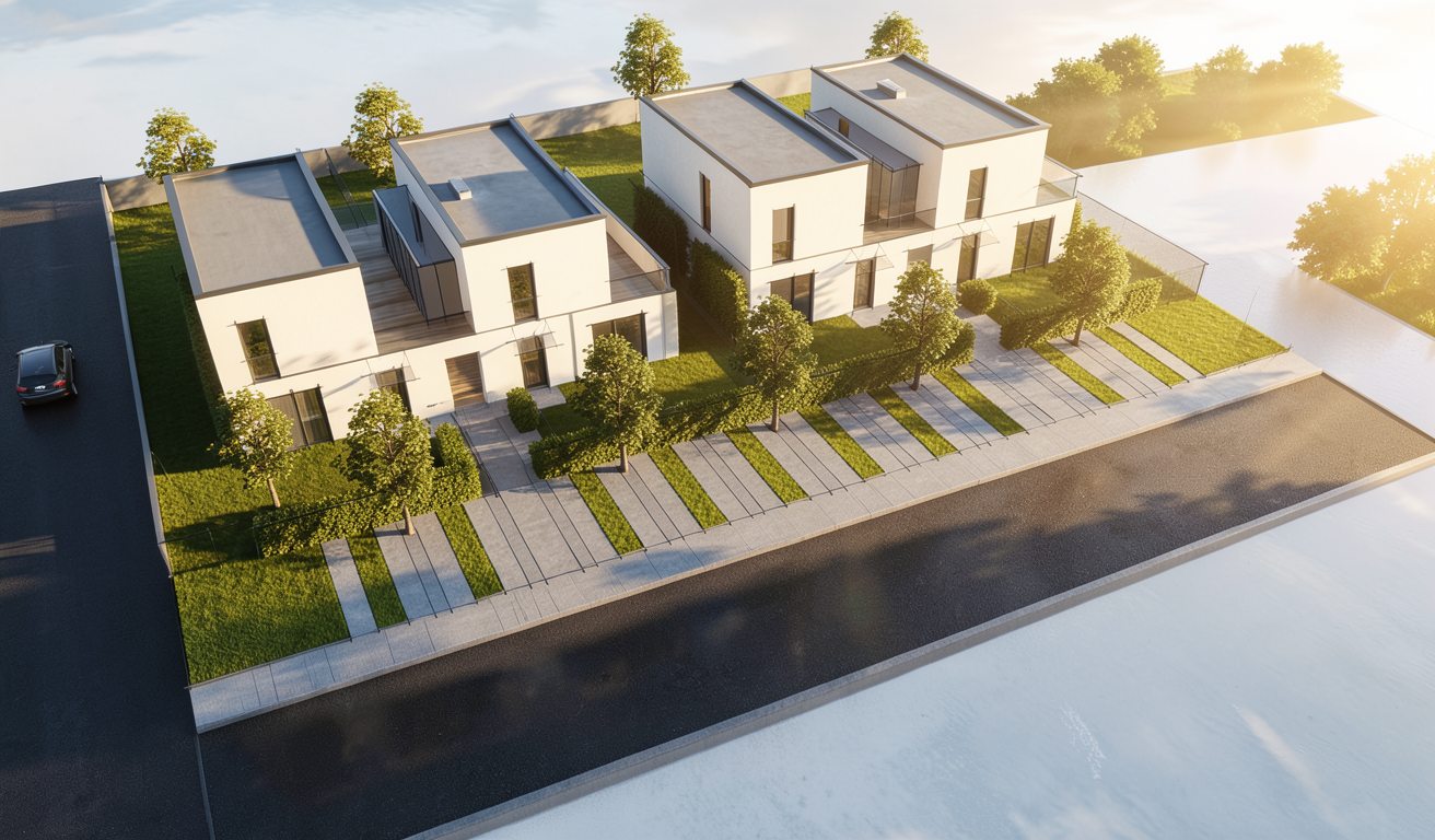retain structure and make materials look new open field background add grass bush in with flax under windows mid grey cladding