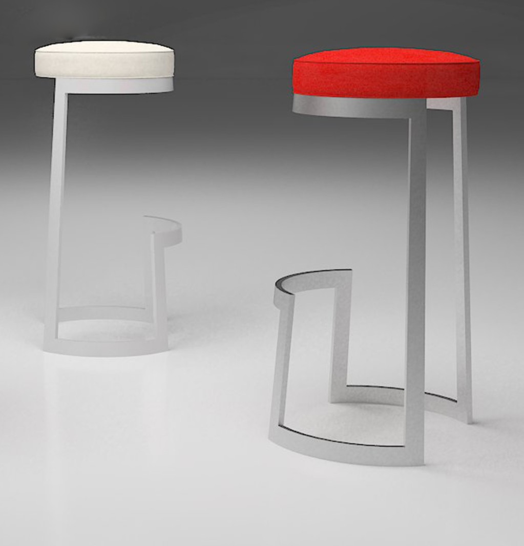 modernist minimalism interior shot barstool with metal legs and back support while cushion is made out of beige fabric architecture architecture