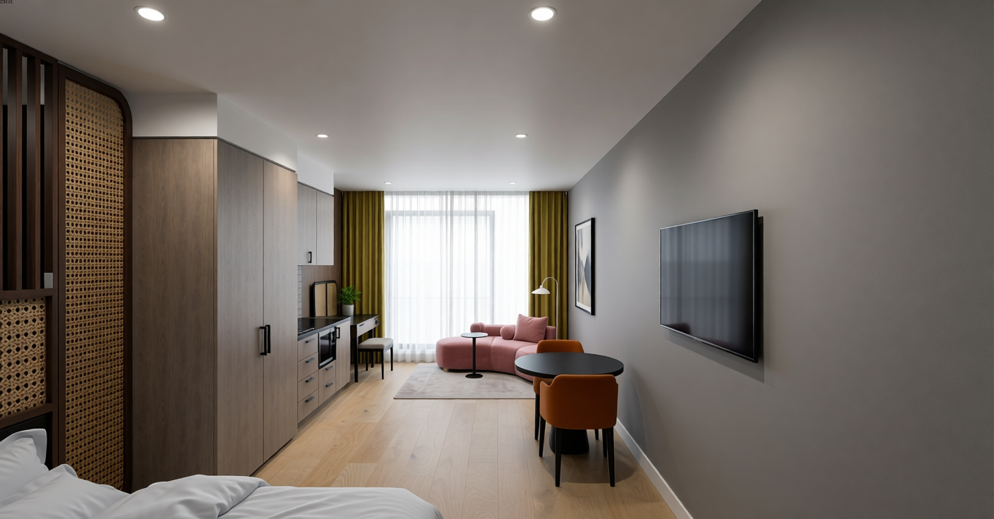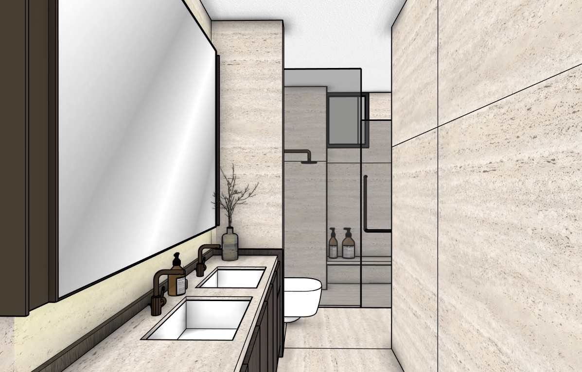 help me render to a realistic render view flooring material same as the wall help me add down light small