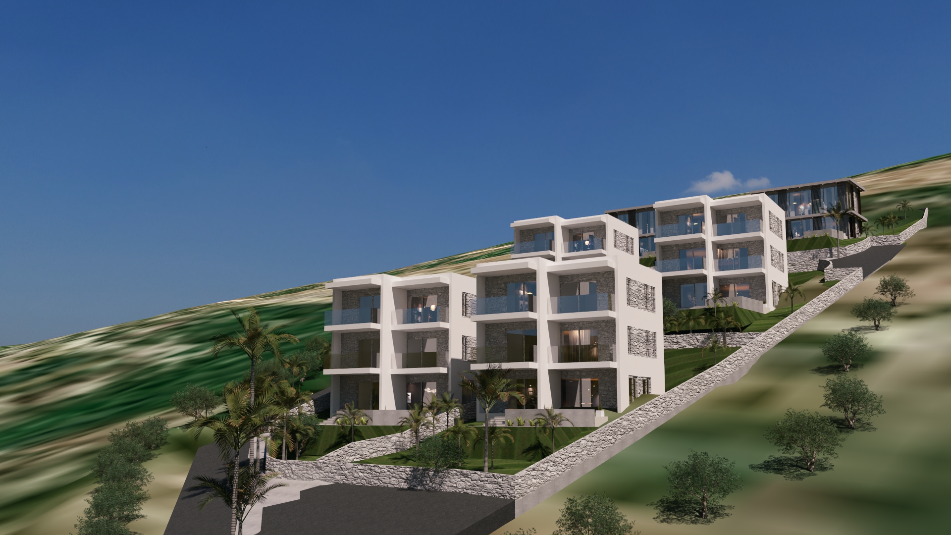 mediterranean landscape with olive trees and stone walls