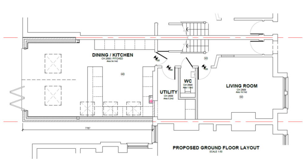 convert this floor plan into a realistic isometric 3d view of a full house show the space from an elevated angle with furniture walls and details visible modern kitchen and furniture dining table sofa tv and bar stools use the same furniture as shows on the plan do not change the orientation of the floorplan