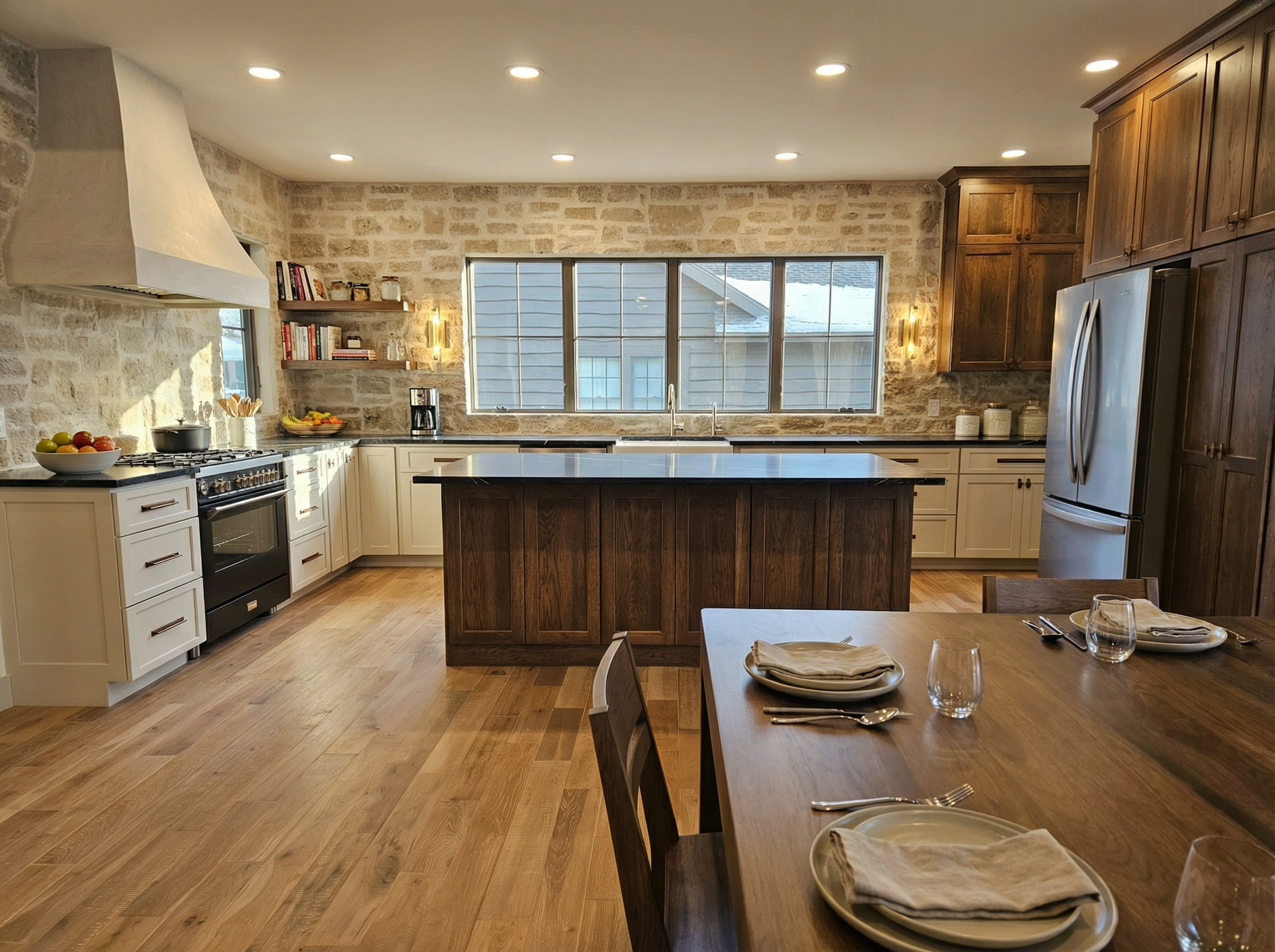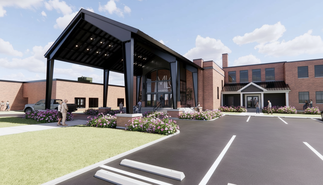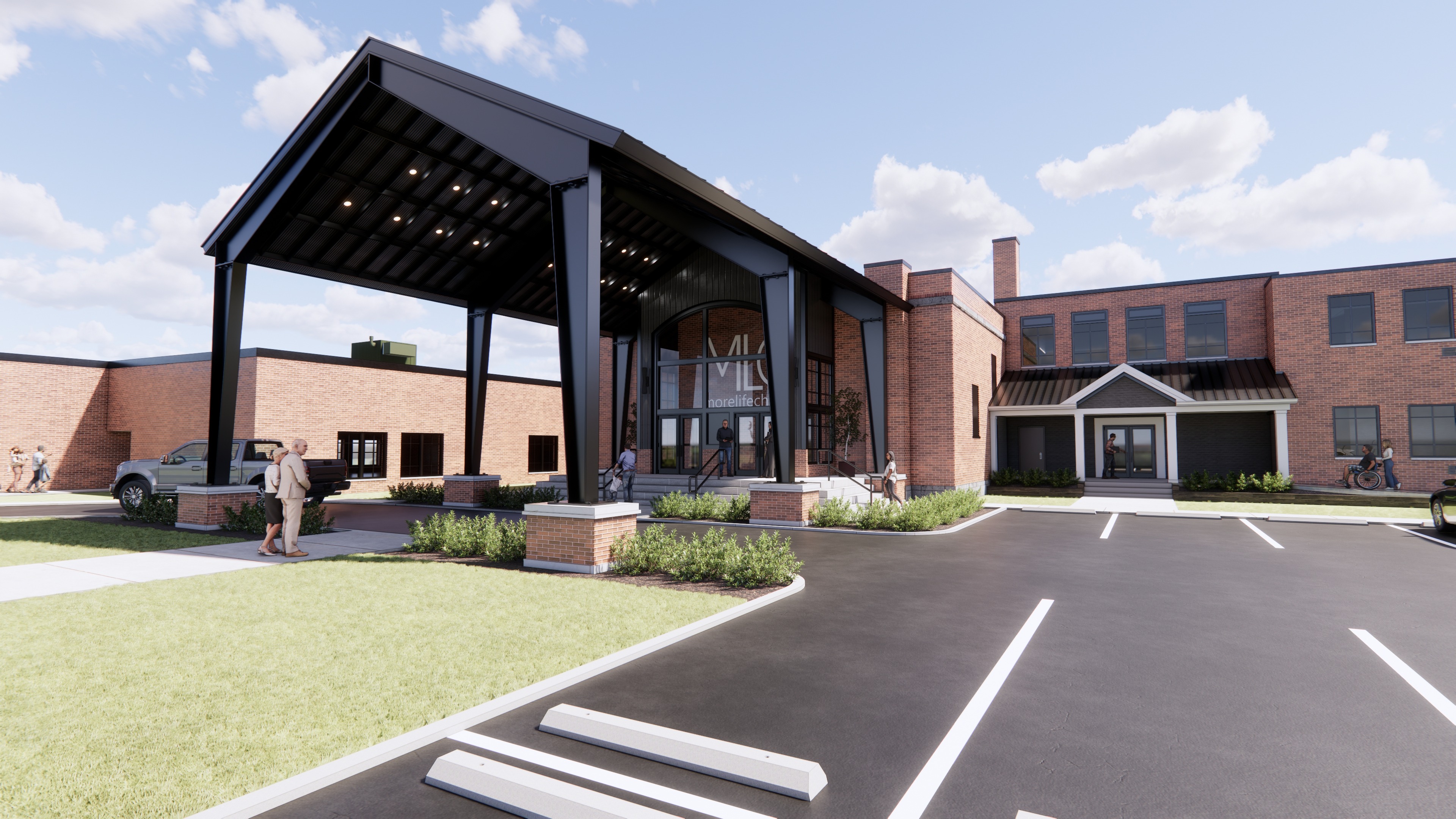 maintain all model geometry create a hyper realistic 8k rendering of this building the scene should be mid morning on a summer day it should feel bright and cheery maximize the realism of the textures as they are shown in the original image show the lawn manicured and the shrubs randomized and in bloom