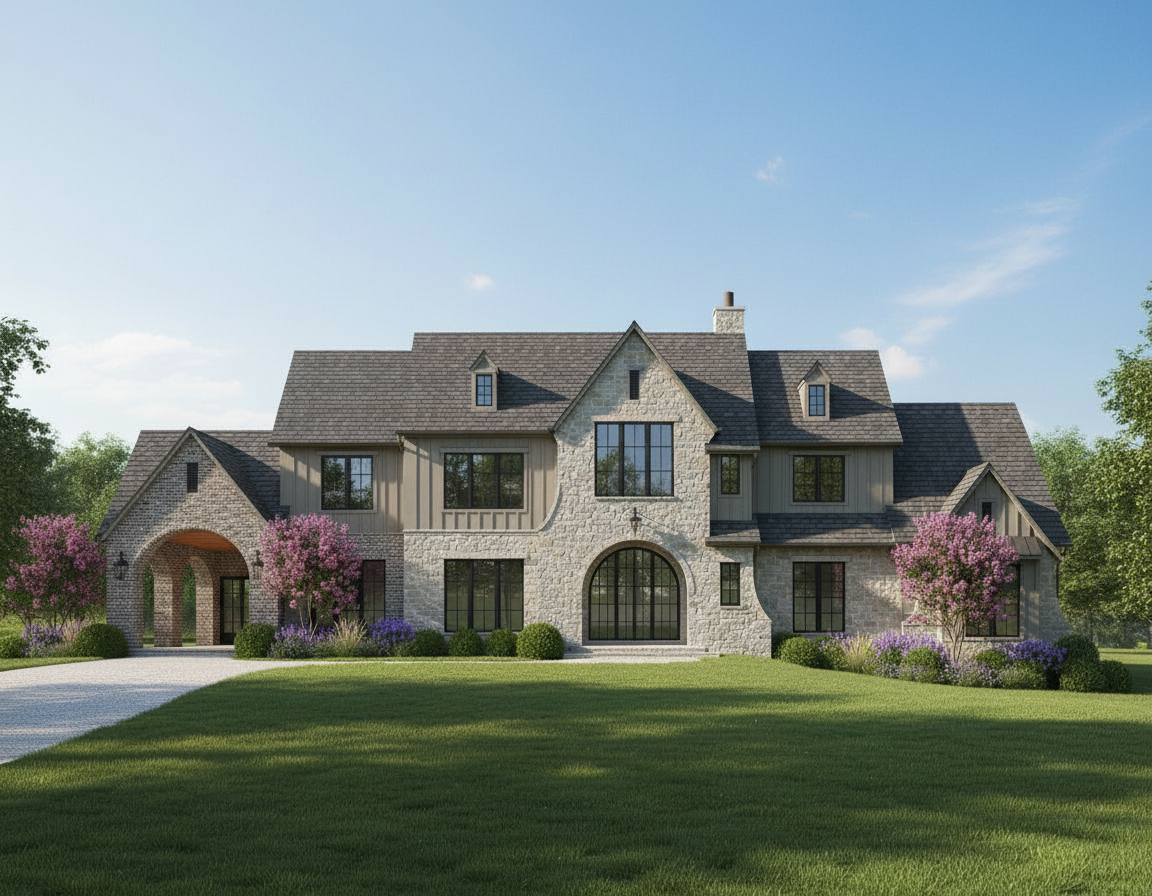 make the left side a portocochere that you can see through remove the gable above porto cochere and add another dormer to resemble others above porto cochere
