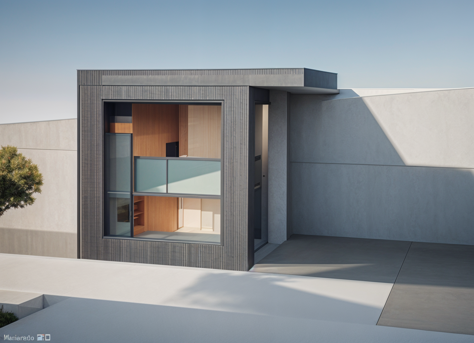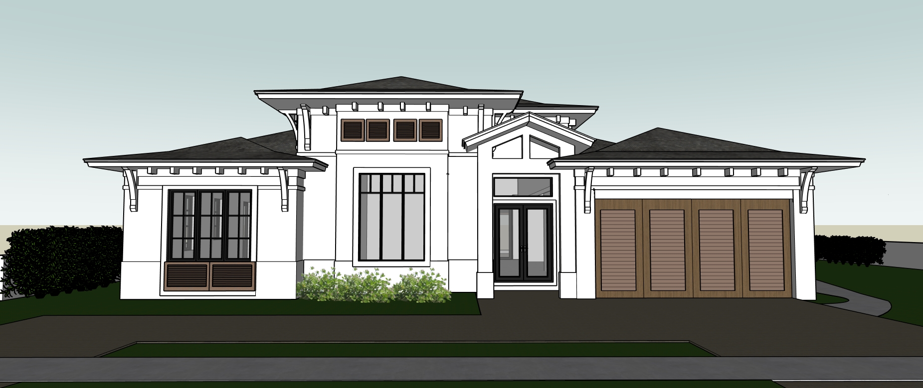 create a hyper realistic exterior photograph of a modern house exterior during a vibrant sunny day the house has a sleek transitional design with crisp white walls contrasted by charcoal grey wood shake roof large glass windows reflect the clear blue sky palm trees with their lush green fronds add a tropical touch the house has surrounding green lawn the atmosphere is tranquil and luxurious with sunlight casting gentle shadows evoking a sense of relaxation and opulence the driveway is dark gray wet stone palm tress on the back of the house podocarpus at the sides separating the house