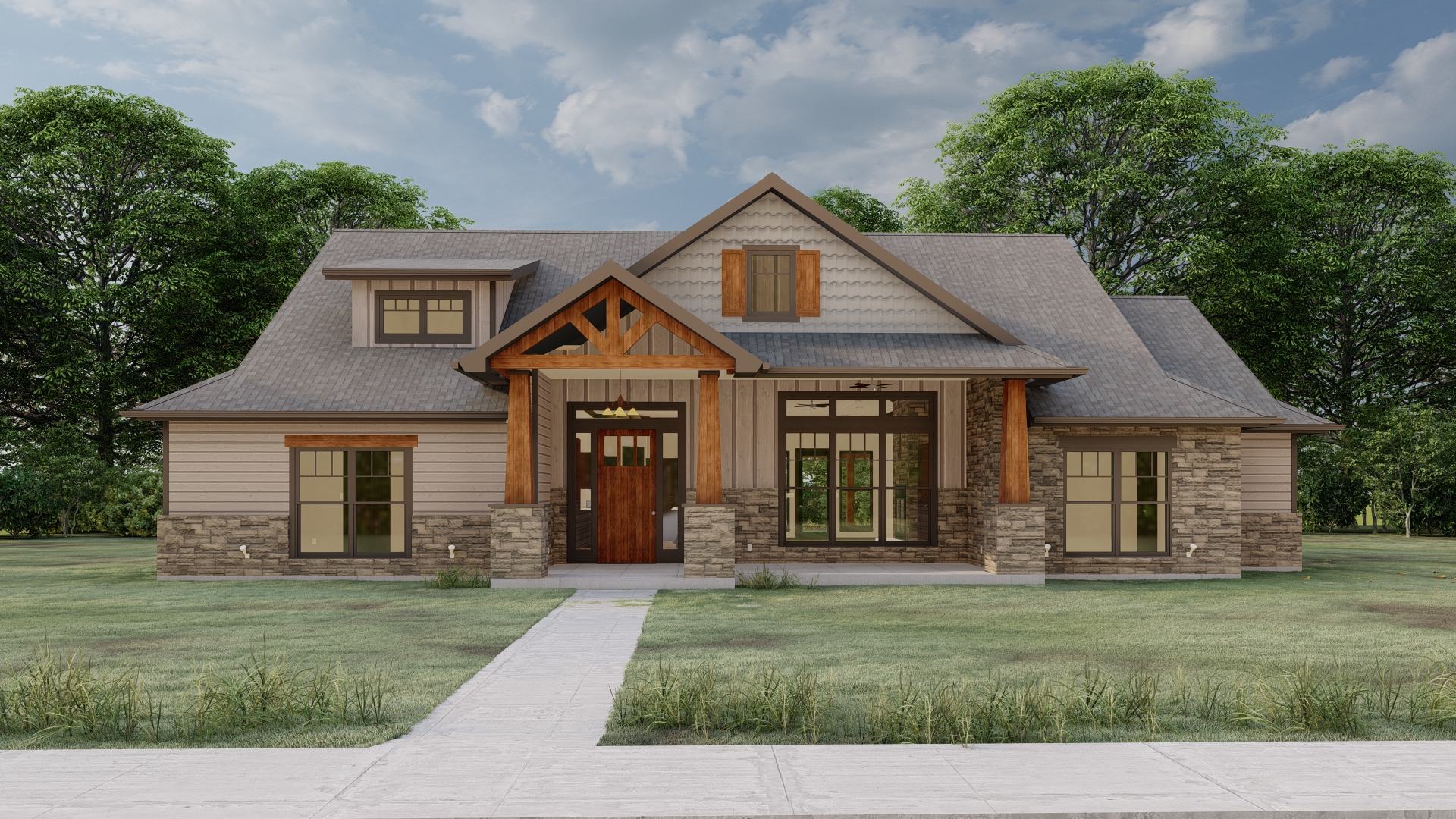make this look more realistic it is a bright sunny day with clouds in the sky the lights are on inside the house