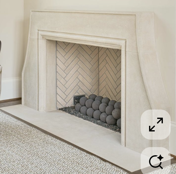 use this shape fireplace with wide white oak cabinets flanking each side for a family room rendering