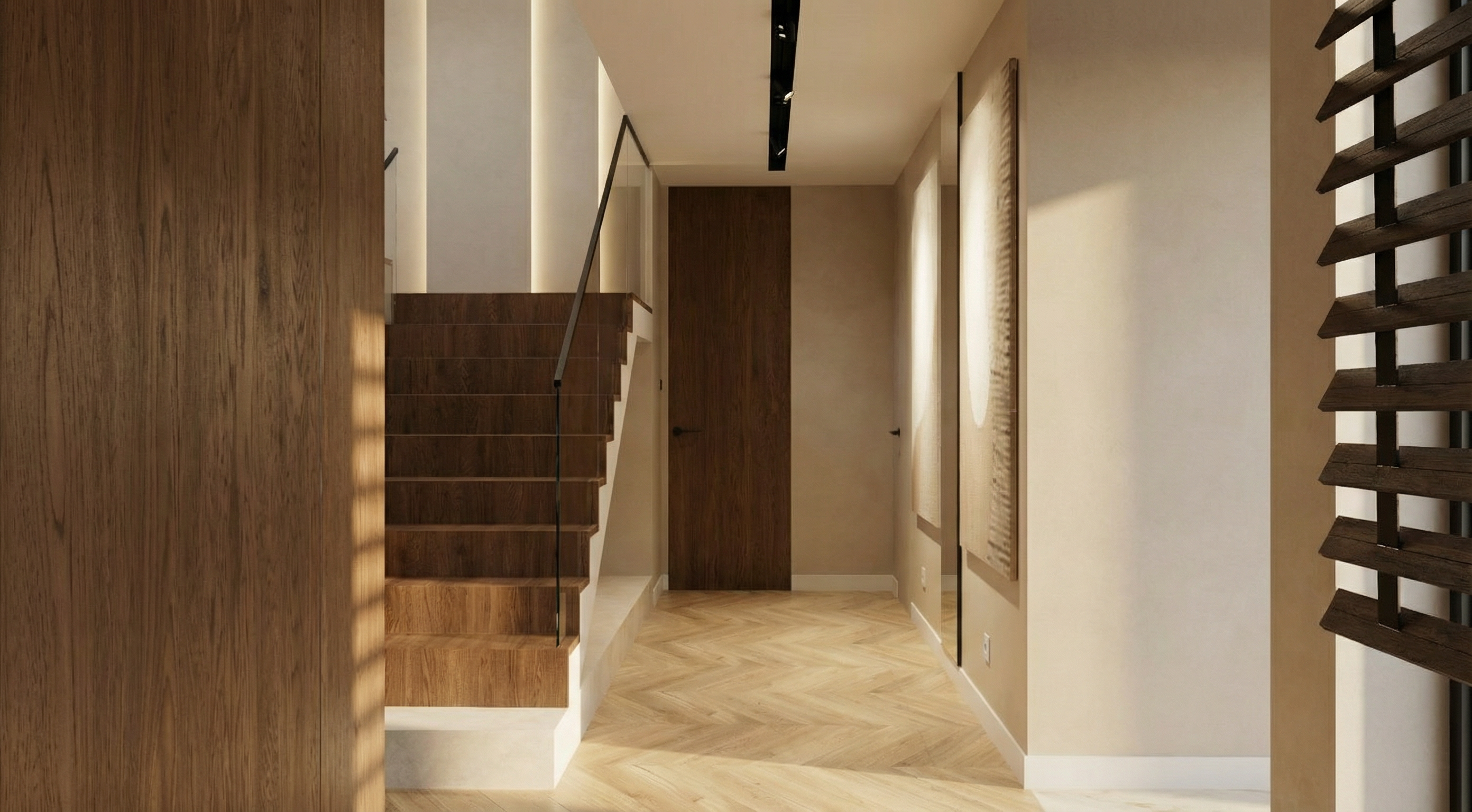 make as photorealistic as possible while keeping textures the same as selection professional landscaping in a lightly wooded scene with good lighting dark grey vertical siding dark roof black windows black garage door to match the style on the plan buff color stone to match the style dark cedar porch post and trim in gable the porch gable is open to see back to the house