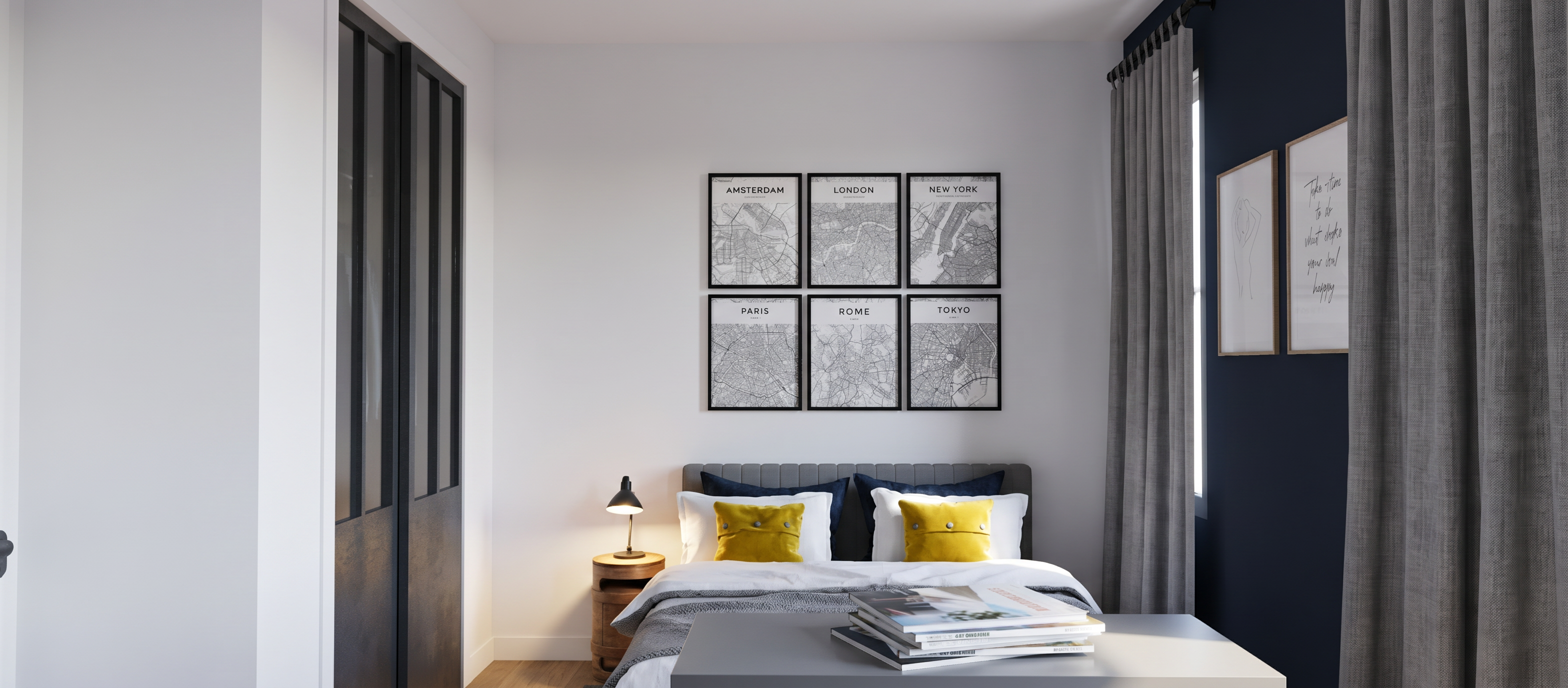 tadao ando exterior shot architectural illustration with colourful buildings only on the main site architecture