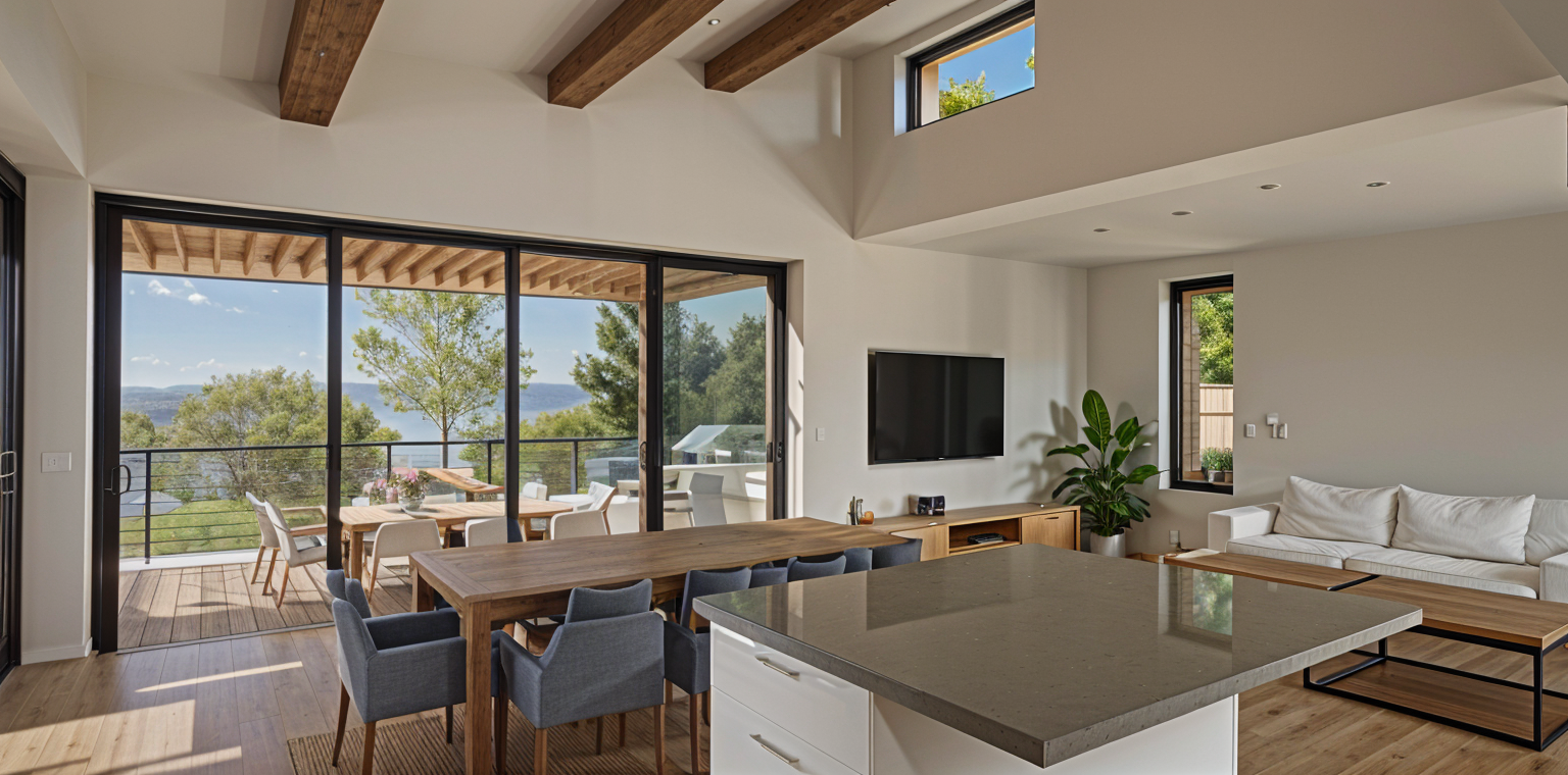 sustainable design exterior shot dark hotel with a lot of large windows for the tower with a terrace pool and a lot of hanging plants architecture