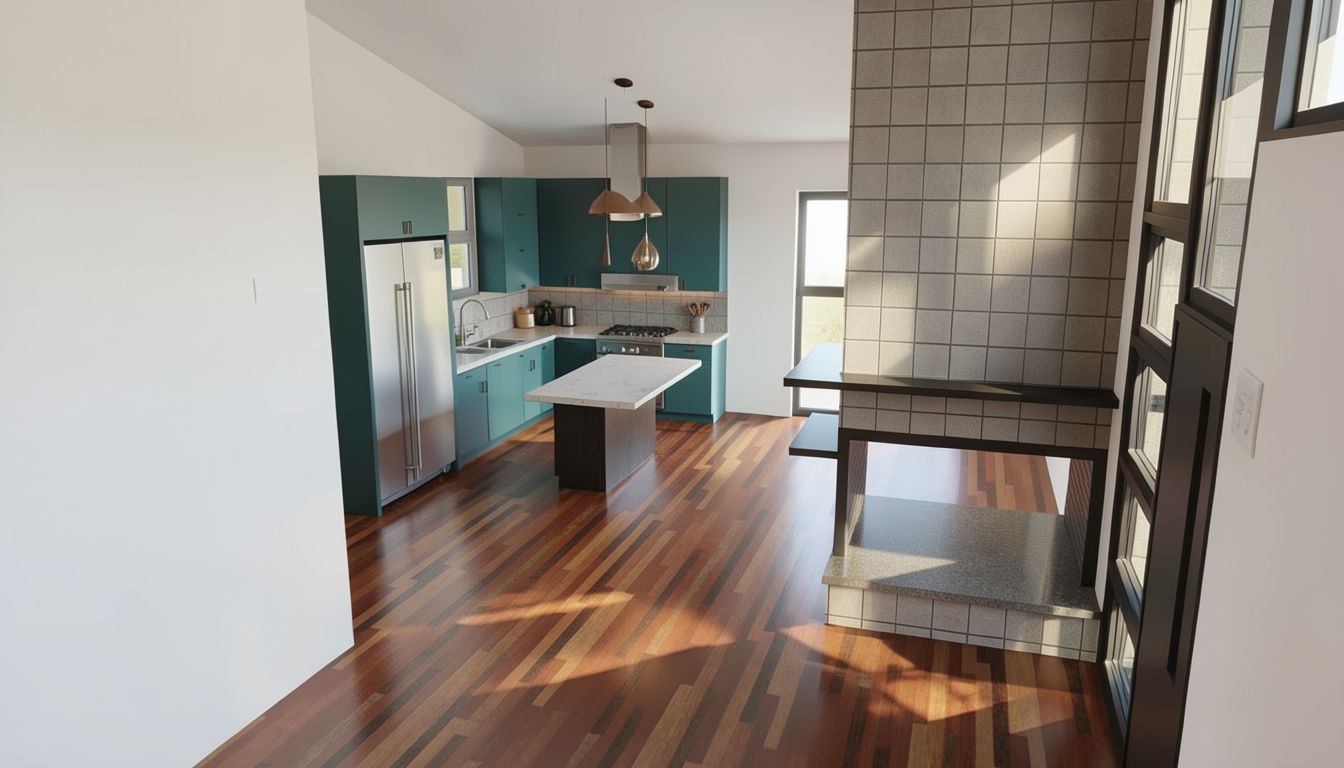 render like a foam core and museum board architectural model