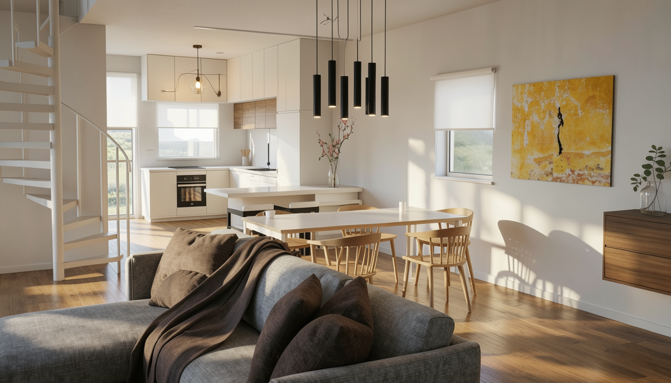 make the balcony railings louvred and make all shutters and railing the same color color is benjamin moore 438 spring valley the house is stucco white and the roof is a light gray metal make as realistic as possible