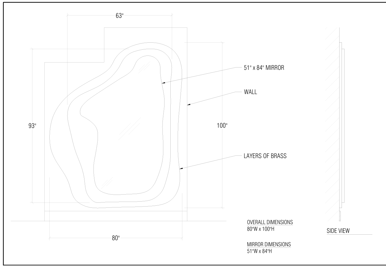 it looks like the overall brass panel size is 80 w x 100 h since the brass sheets only come in 36 x 96 we can t achieve the full 80 width in one piece so we ll need to seam multiple sheets together instead of doing straight vertical seams we want the seams to feel intentional and designed more like a feature rather than a limitation think soft sweeping cuts instead of standard panel joints can you please draw out these 3 options in elevation based on the full 80 width option 1 soft vertical wave 3 vertical panels 26 5 each 2 seams with very subtle s curves keep curves extremely soft large radius nothing dramatic can be centered or slightly offset