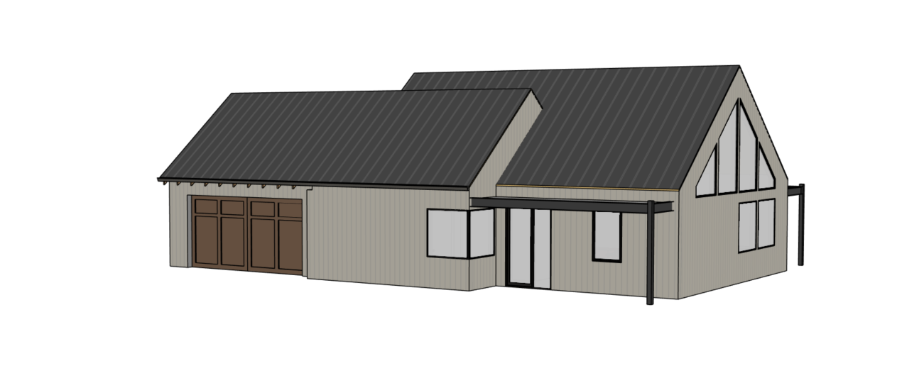 home in the colorado foothills with vertical grey wood siding dark metal roof interior lights