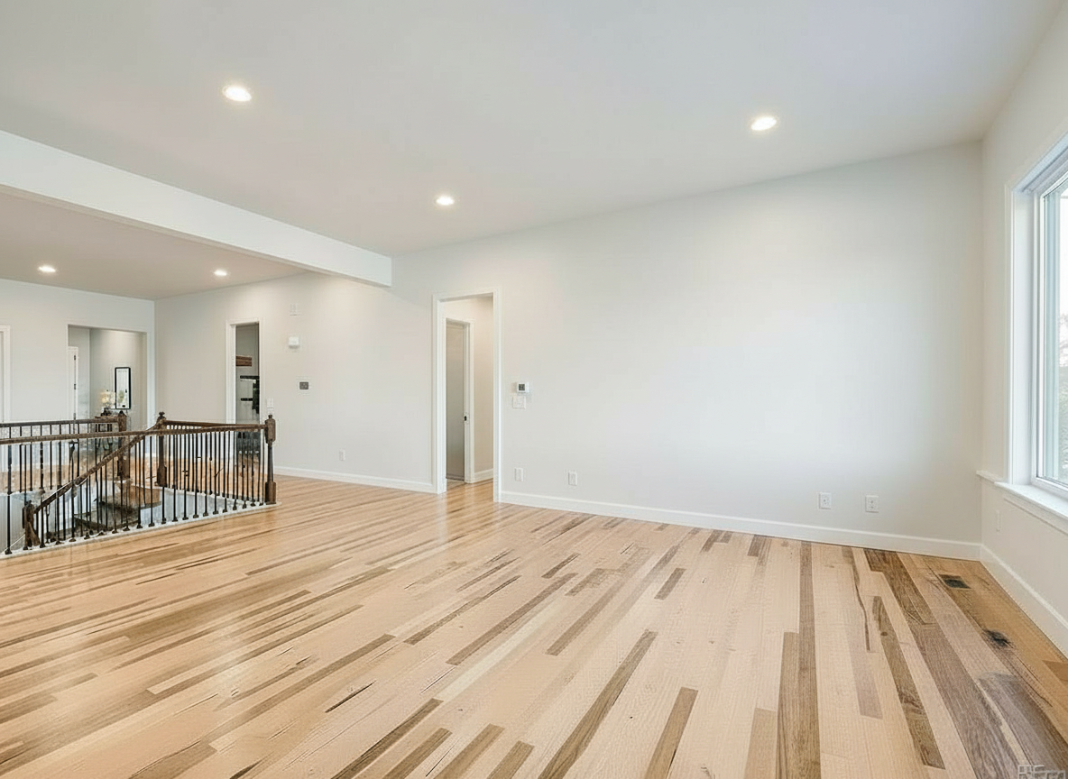 add modern fireplace centered on living room wall with tv above maintain perspective